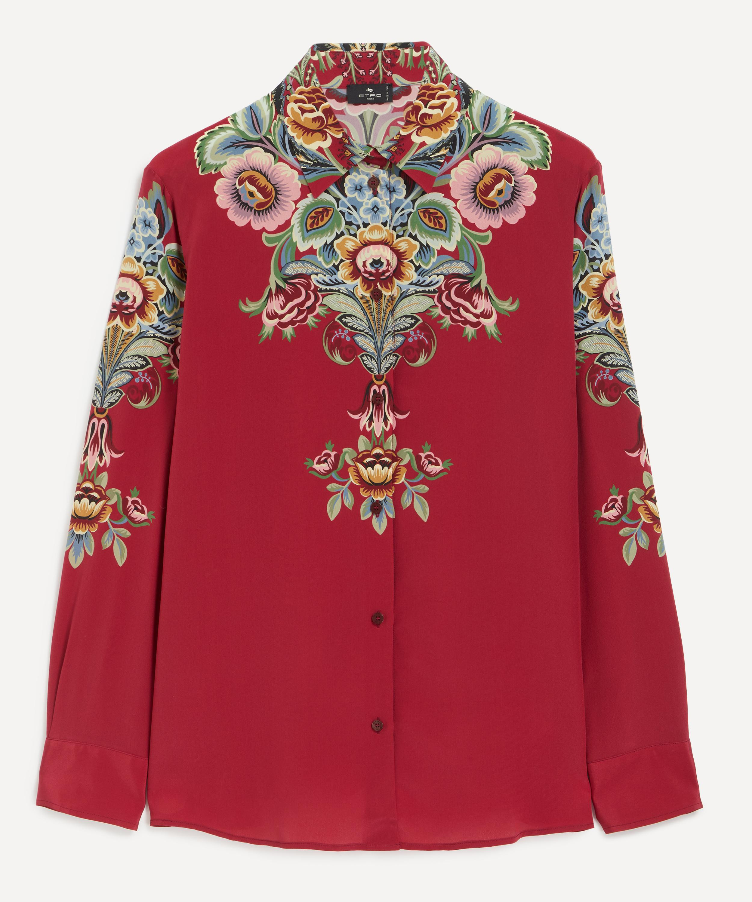 DETAILS Silk crepe de chine shirt Relaxed fit Straight cut Long sleeves Working cuffs Classic collar Button fastening Placed floral print Made in Italy SIZE & FIT Model is 178cm/5'10"; Chest: 77cm; Waist: 65cm; Hip: 92cm and wears a size 8 COMPOSITION & CARE 100% Silk Dry clean