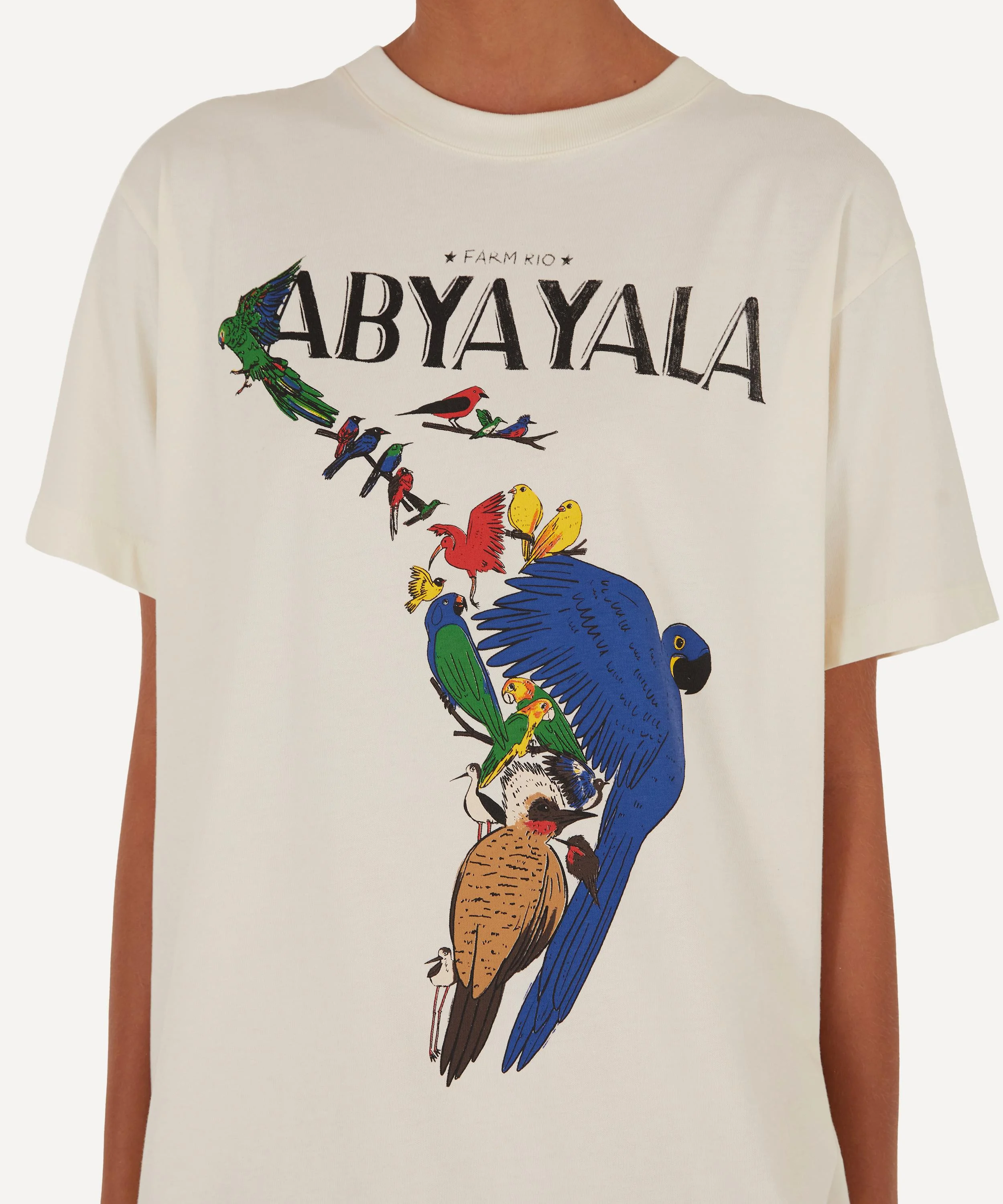 DETAILS Cotton t-shirt Relaxed fit Short sleeves Crew neckline Bird graphic Abya Yala slogan COMPOSITION & CARE 100% Cotton Gentle machine wash