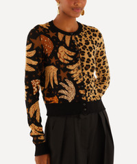 DETAILS Knitted cardigan Regular fit Long sleeves Crew neck Button closure Ribbed trims Contrast leopard and banana prints COMPOSITION & CARE 65% Viscose; 35% Polyamide Hand wash