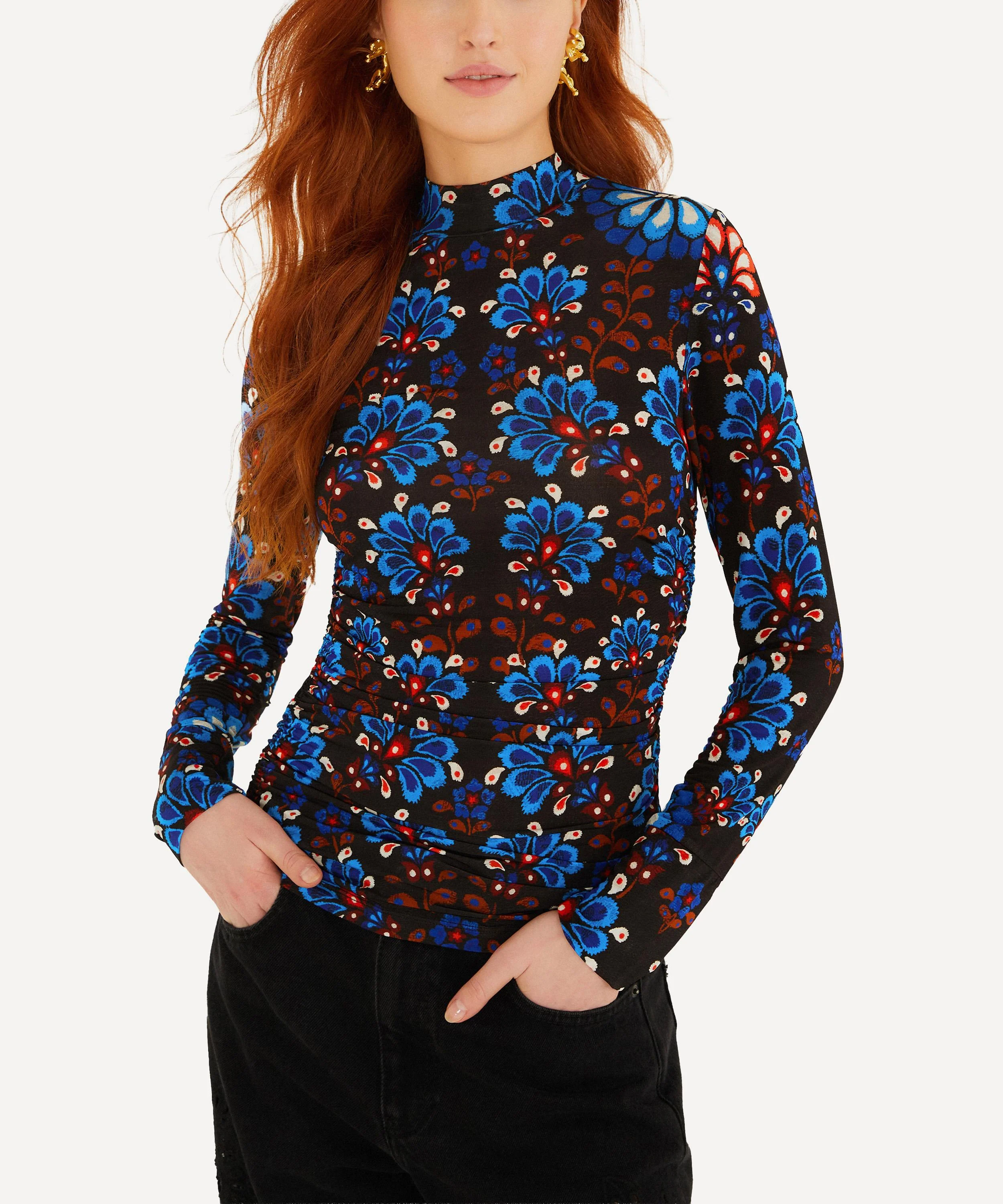 DETAILS Blouse Form-fitting design High neckline Long sleeves Black Latina Scarf print COMPOSITION & CARE 85% Viscose; 15% Elastane Machine wash, gentle cycle
