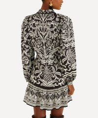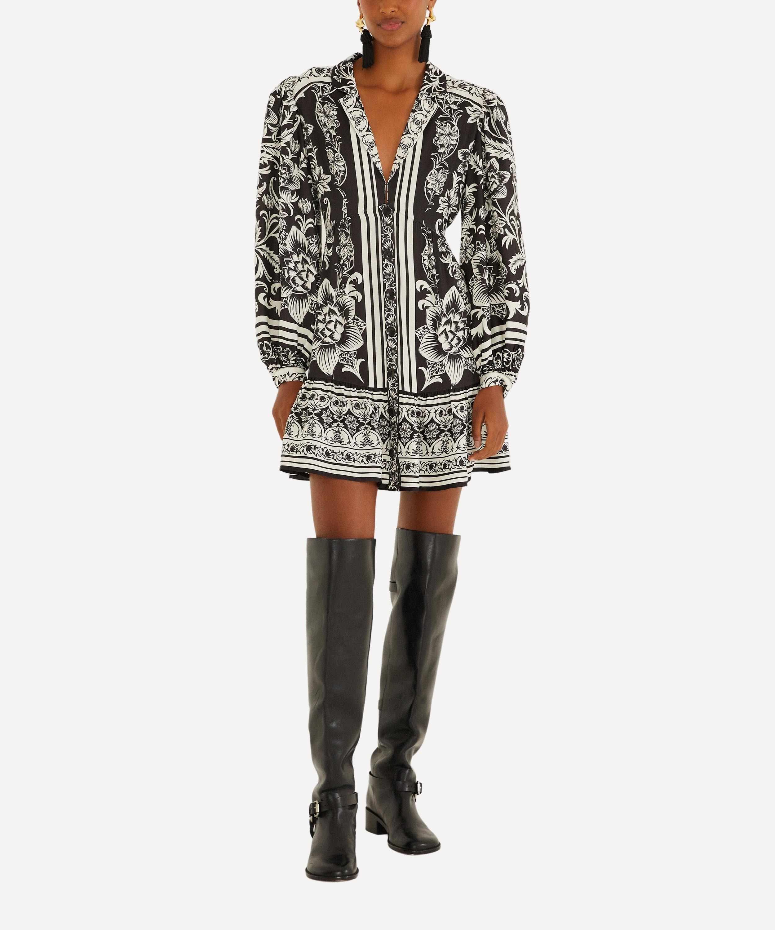 DETAILS Mini dress Long puff sleeves Collared V-neckline Button placket Peplum hem Black floral print COMPOSITION & CARE 100% Viscose Dry clean
