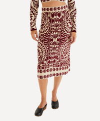 DETAILS Knitted skirt Straight fit Midi length Jacquard-knit design Burgundy Pineapple Love print COMPOSITION & CARE 65% Viscose; 35% Polyamide Hand wash