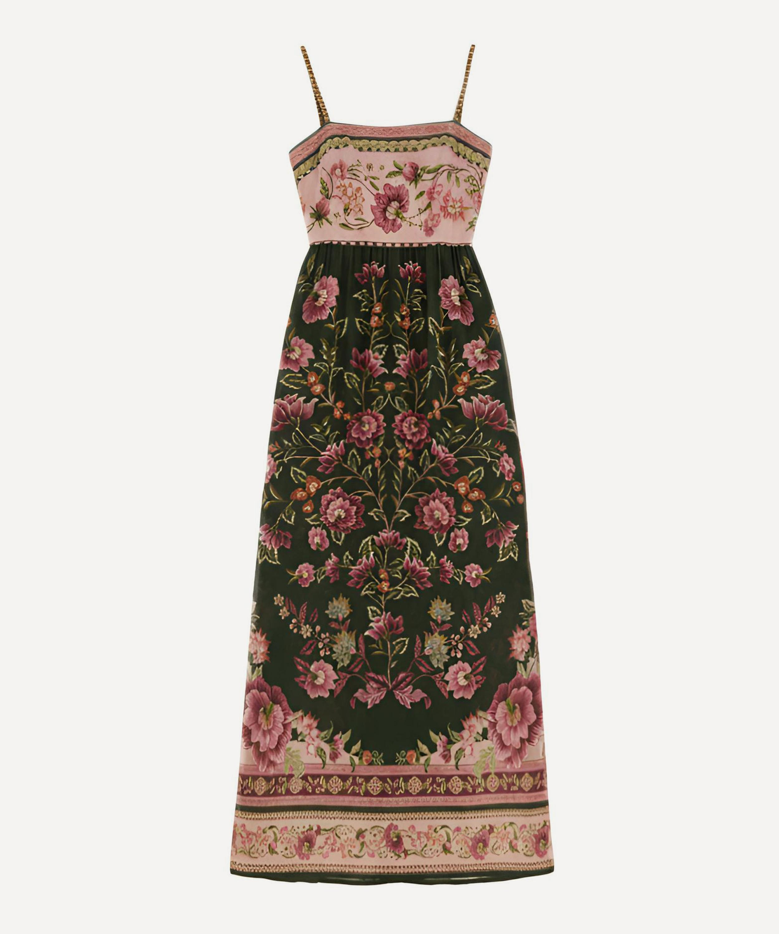 DETAILS Viscose midi dress Sleeveless Braided straps Square neckline Empire waist Green Flowering Garden Tree print COMPOSITION & CARE 100% Viscose Machine wash, gentle cycle