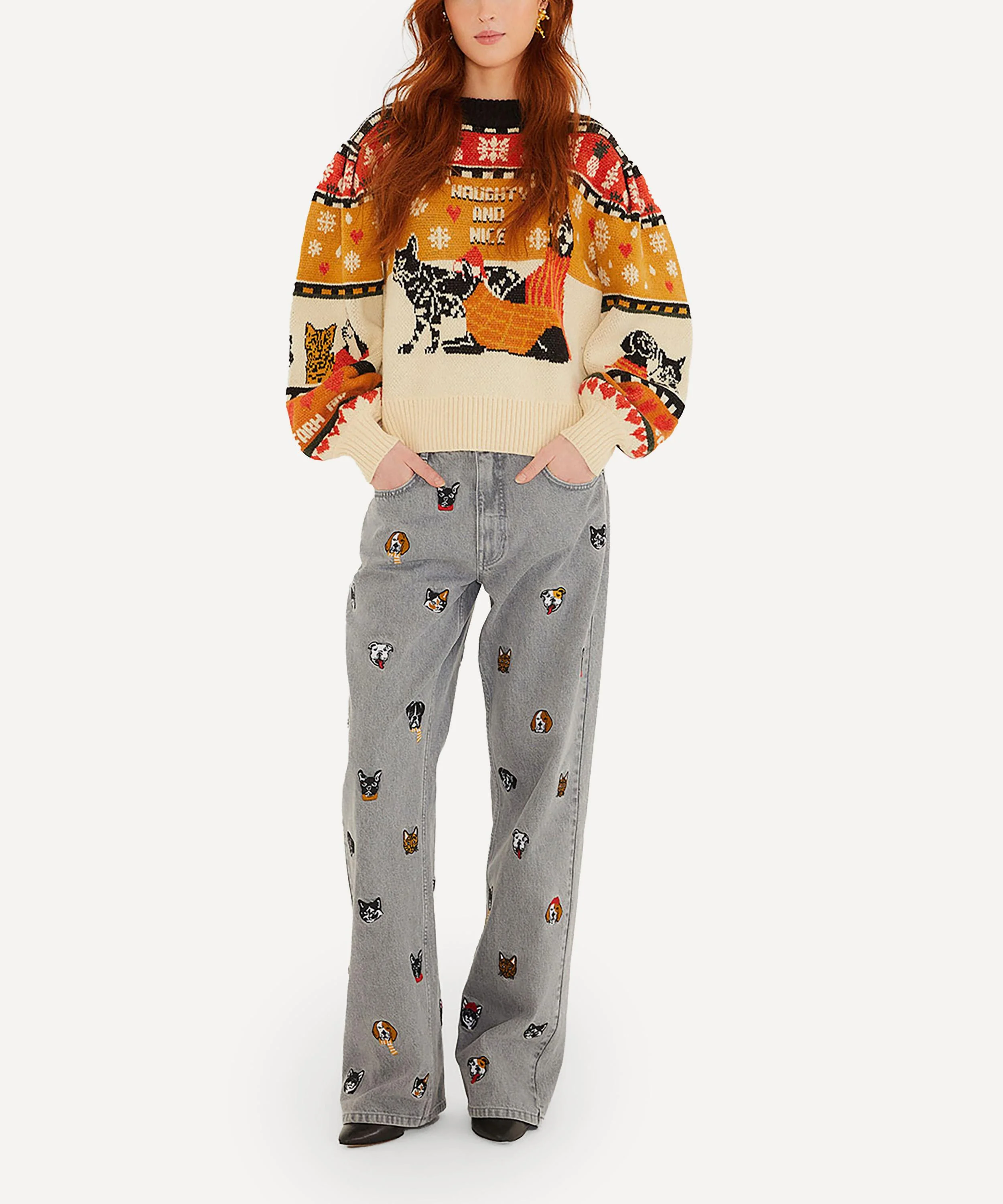 DETAILS Jeans Relaxed fit Straight-leg Full-length Five-pockets Cats and dogs embroidery COMPOSITION & CARE 100% Cotton Machine washable
