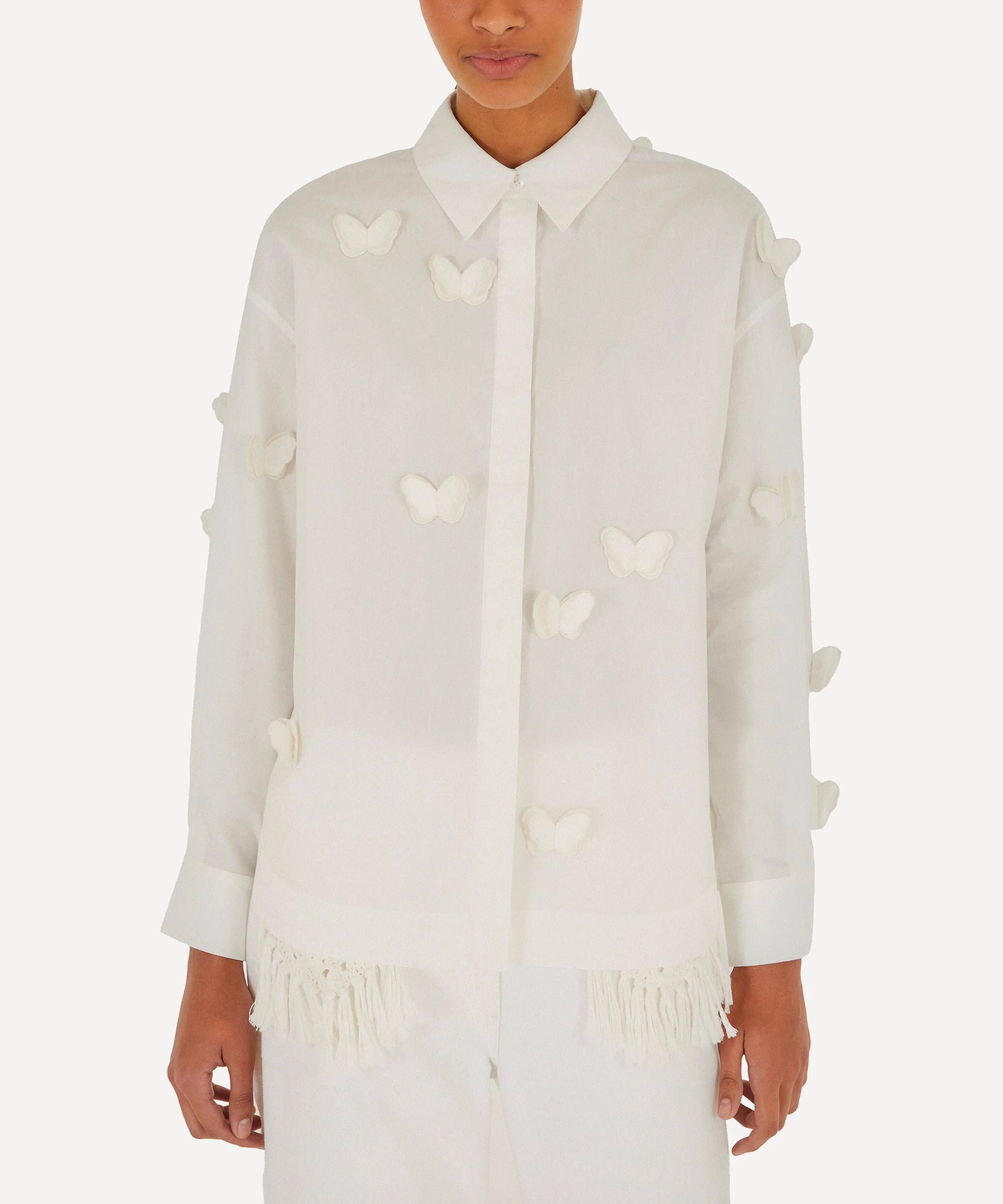 DETAILS Linen-blend blouse Relaxed fit Long sleeves Buttoned cuffs Classic point collar Concealed button placket Butterfly embellishment COMPOSITION & CARE 55% Linen; 45% Viscose Hand wash