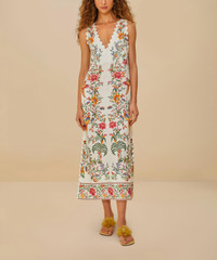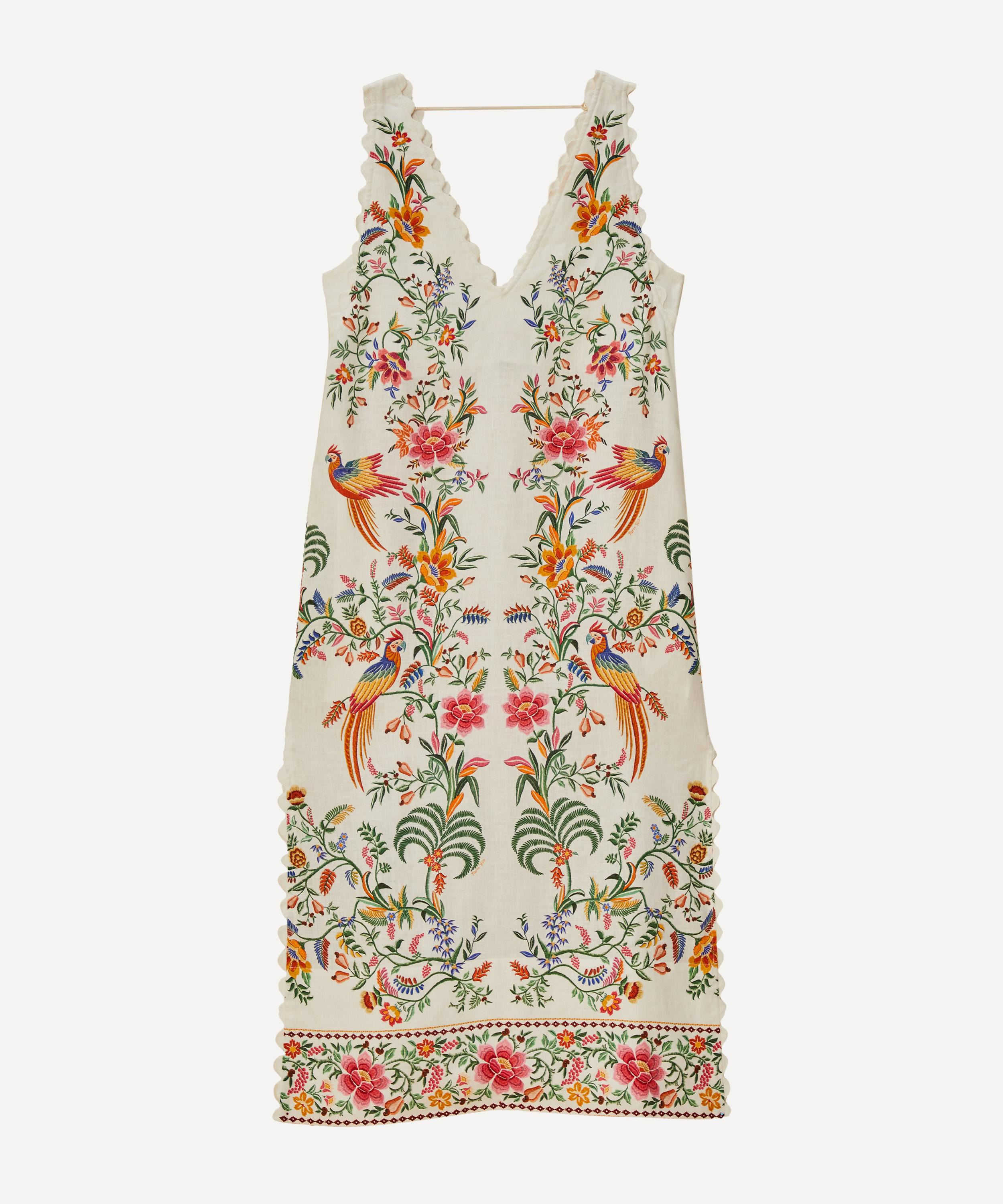DETAILS Linen maxi dress Easy silhouette Sleeveless V-neckline Scalloped detailing Side pockets Delicate Forest print COMPOSITION & CARE 100% Linen Hand wash