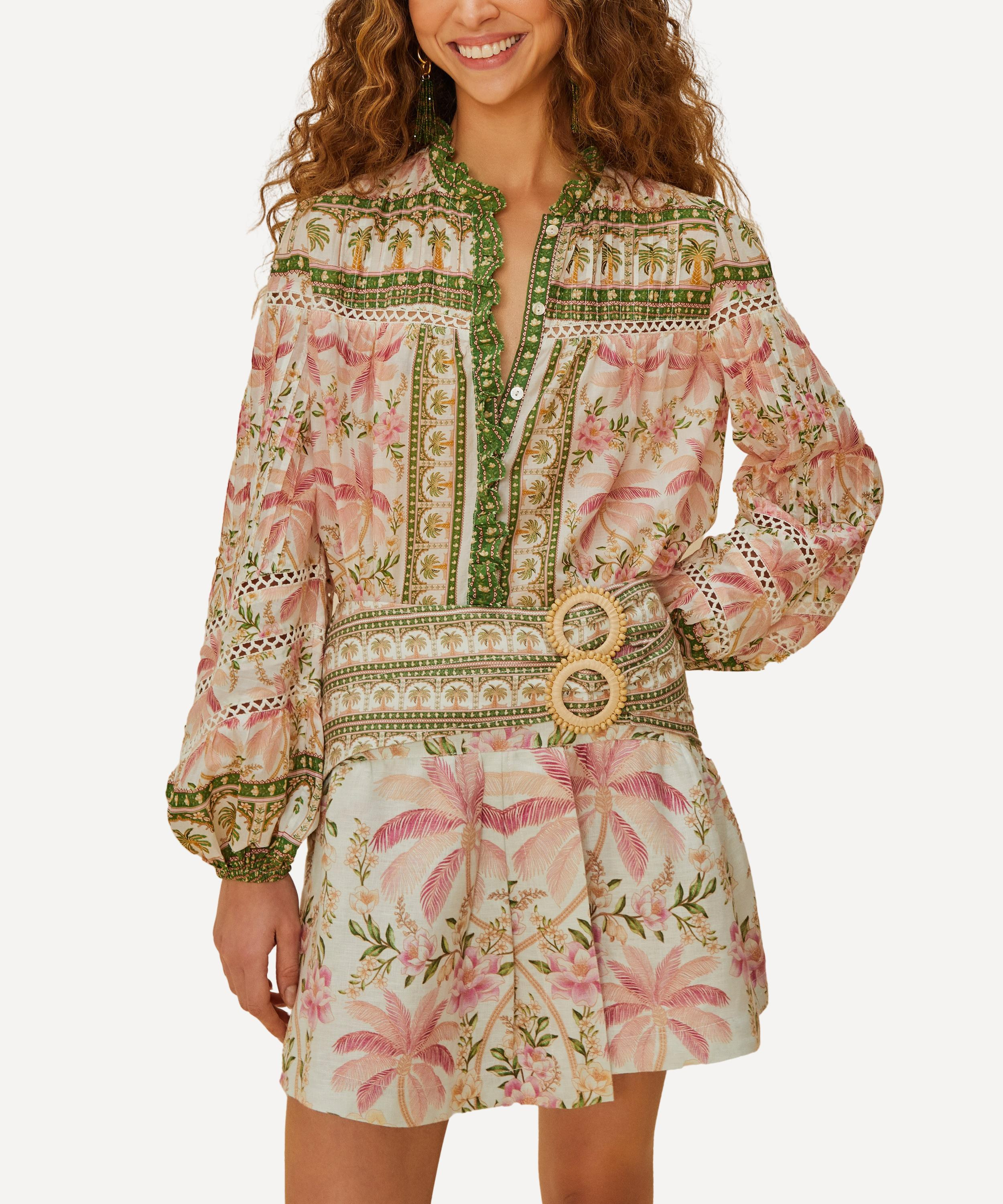 DETAILS Linen-blend blouse Relaxed fit Long sleeves Ruffled round neckline and placket Buttoned front Eyelet details COMPOSITION & CARE 55% Linen; 45% Viscose Hand wash