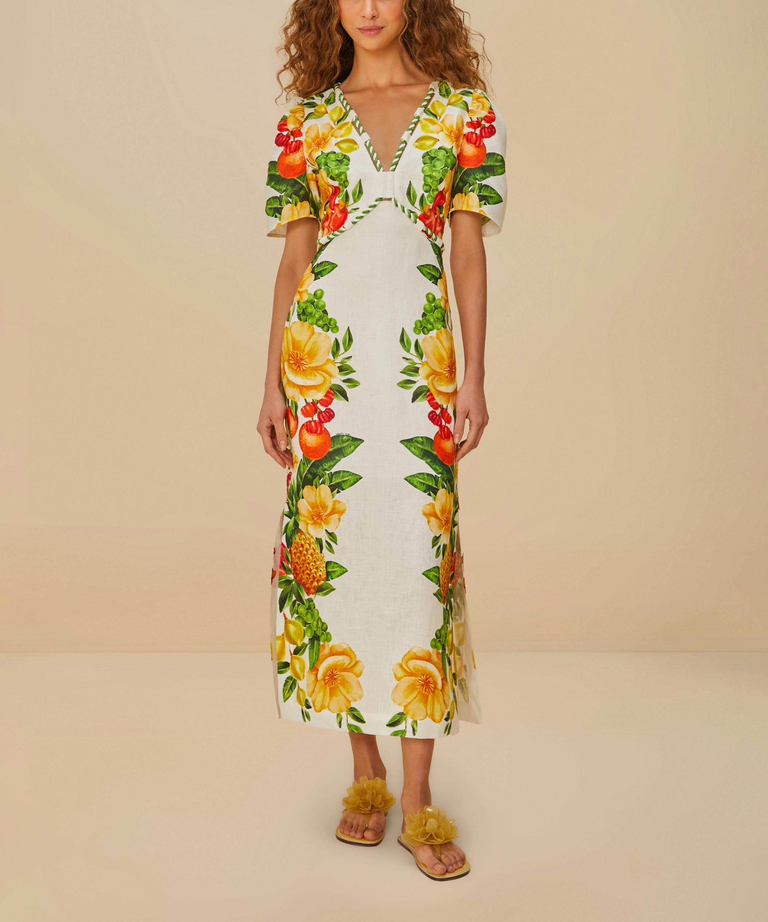 Off-White Picnic Flowers Euroflax™ Premium Linen Maxi Dress