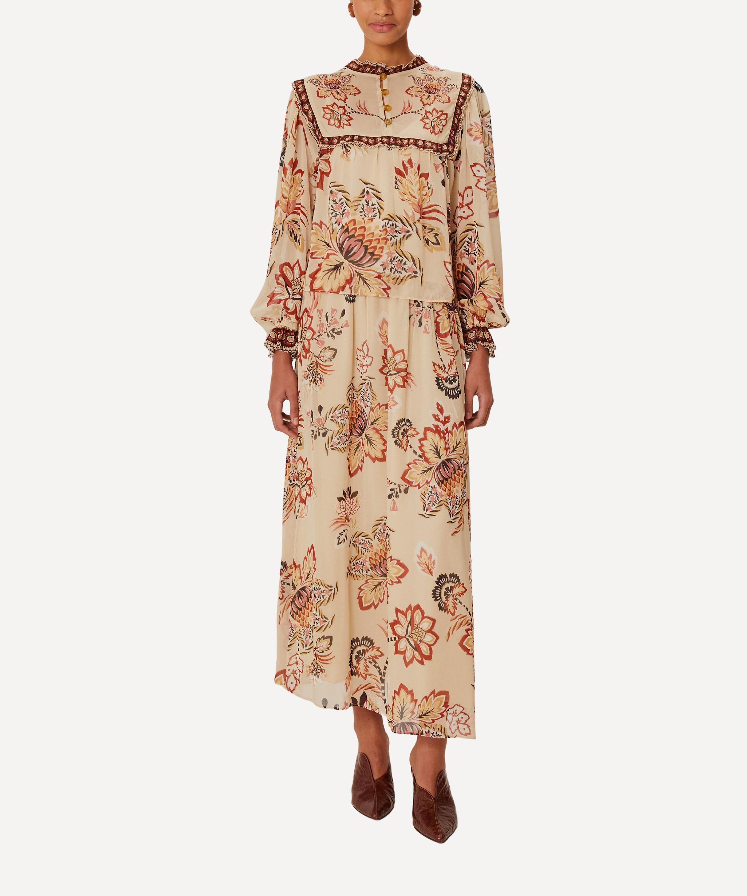 DETAILS Cotton skirt Midi length Flared A-line silhouette Side seam pockets Invisible zipper Sand Aura Floral print COMPOSITION & CARE 100% Viscose Machine wash delicate cycle