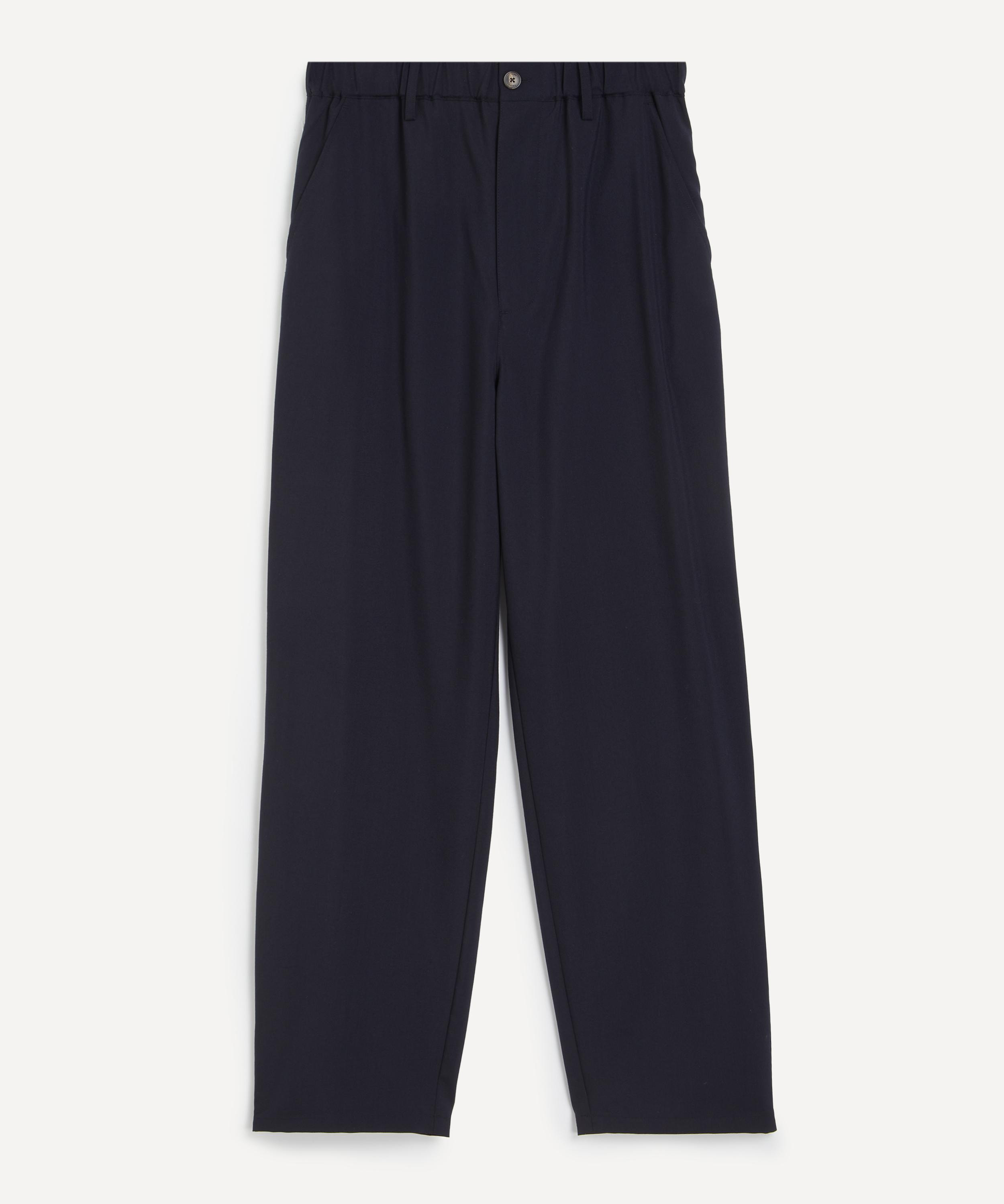 DETAILS Wool trousers Mid-rise Relaxed fit Straight-leg Full length Front rise: 13” Inseam: 29.5” Leg opening: 18” Elasticated waistband Front pleats Side pockets Rear patch pockets SIZE & FIT Model is 188cm/6'2"; Chest: 89cm; Waist: 28cm and wears a size M COMPOSITION & CARE 100% Wool Dry clean