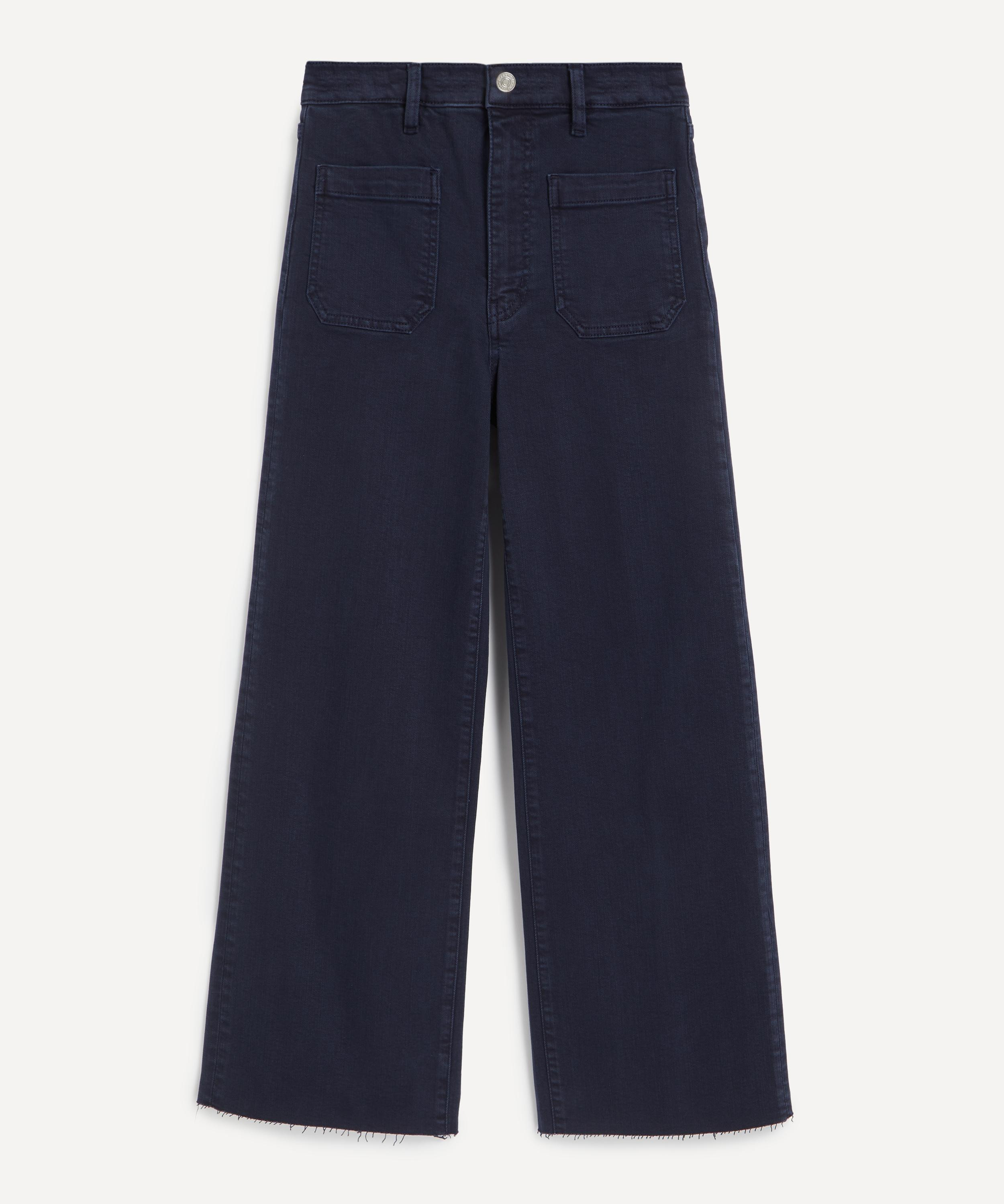DETAILS Anchor Jeans Super stretch denim High-rise Subtle wide-leg Cropped length Front rise: 11.5” Inseam: 27.5” Leg opening: 20.5” Front and back patch pockets Distressed hems Designer wash: Navy Raw Fray SIZE & FIT Model is 175cm/5’9”; Chest:81cm; Waist: 61cm; Hip: 89cm and wears a size 27 COMPOSITION & CARE 57% Cotton; 38% Rayon; 3% Elasterell-P; 2% Elastane Machine wash cold