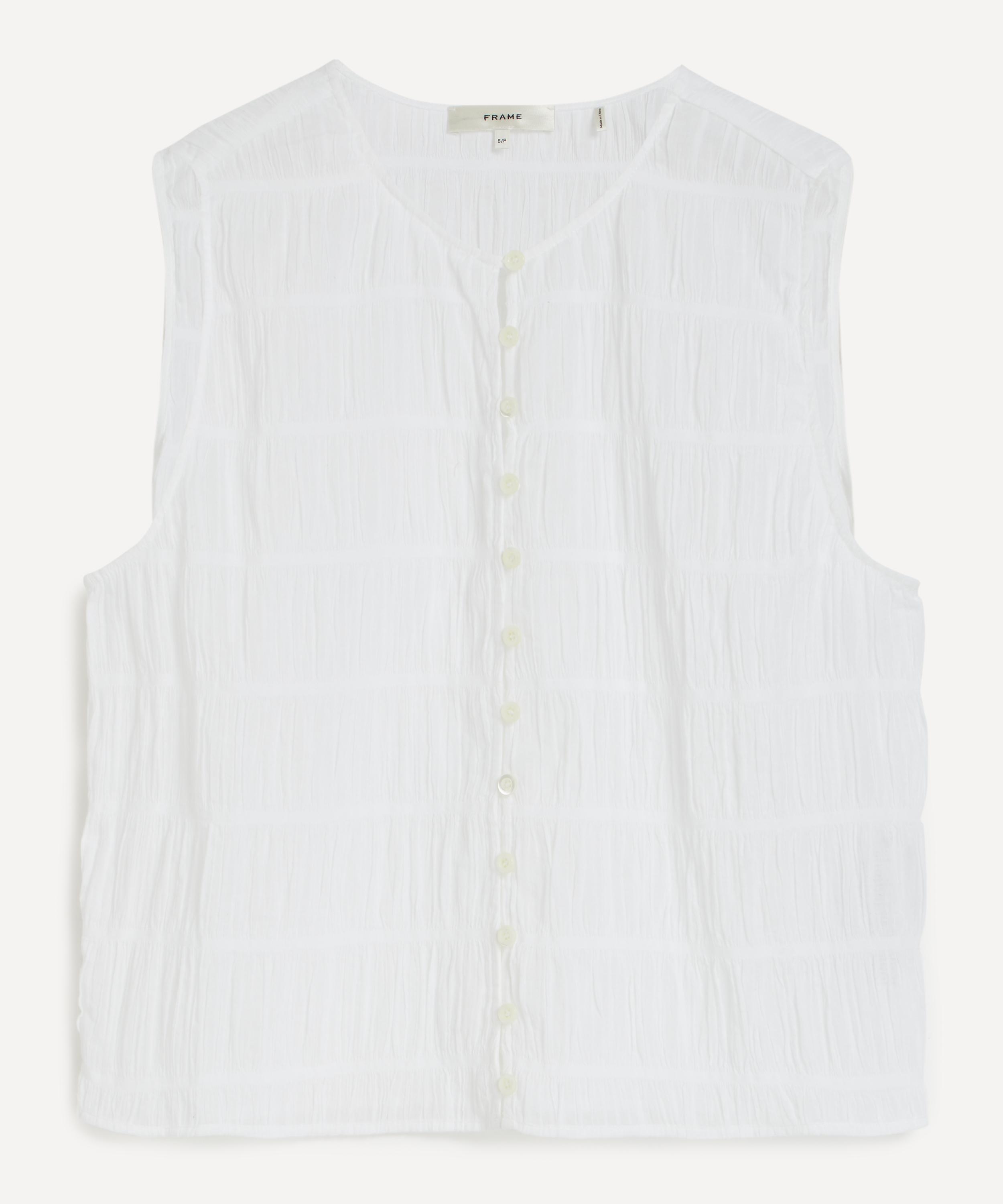 DETAILS Cotton-stretch tank top All-over smocked detailing Regular fit Round neckline Exposed front button fastening Model is 175.5cm/5'9"; Chest: 81.5cm; Waist: 64.5cm; Hip: 89cm and wears a size S COMPOSITION & CARE 99% Cotton; 1% Elastane Delicate machine wash