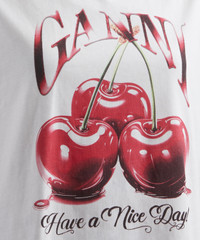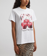 DETAILS Cotton jersey T-Shirt Relaxed fit Crew neckline Short sleeves GANNI cherry graphic SIZE & FIT Model is 173cm/5'8"; Chest: 84cm; Waist: 64cm; Hips: 86cm and wears a size S COMPOSITION & CARE 100% Cotton Cold machine wash