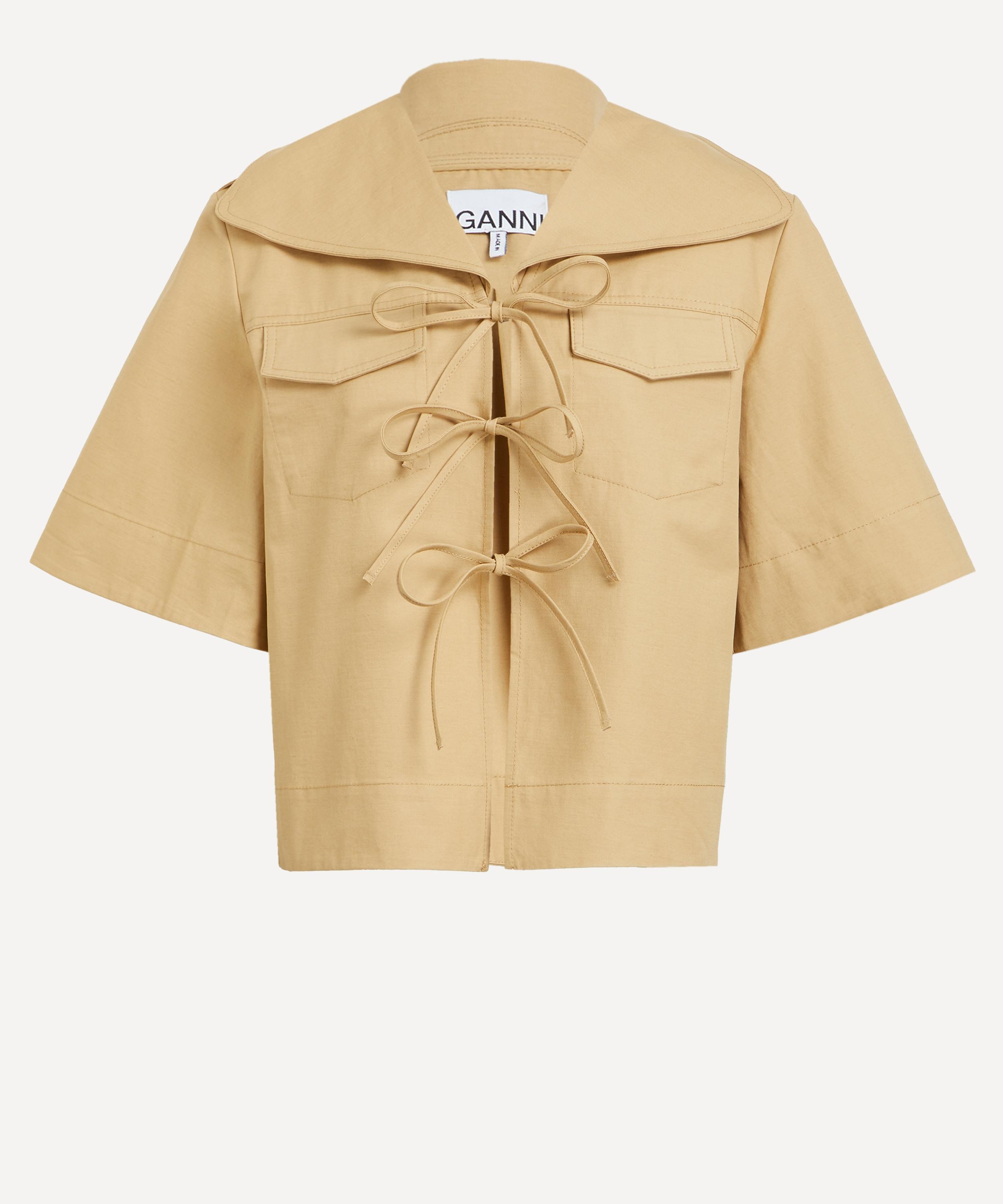 DETAILS Cotton-linen blouse Relaxed fit Large collar with belted neck strap V-neckline Short, adjustable sleeves Shoulder epaulettes Front fastening with three tie bands Chest flap pockets Pleat at back Lined SIZE & FIT Model is 176cm/5'8"; Chest: 76.5cm; Waist: 61.5cm; Hip: 88cm and wears a size 8 COMPOSITION & CARE 83% Cotton; 17% Linen Lining: 100% Cotton Machine wash, cold