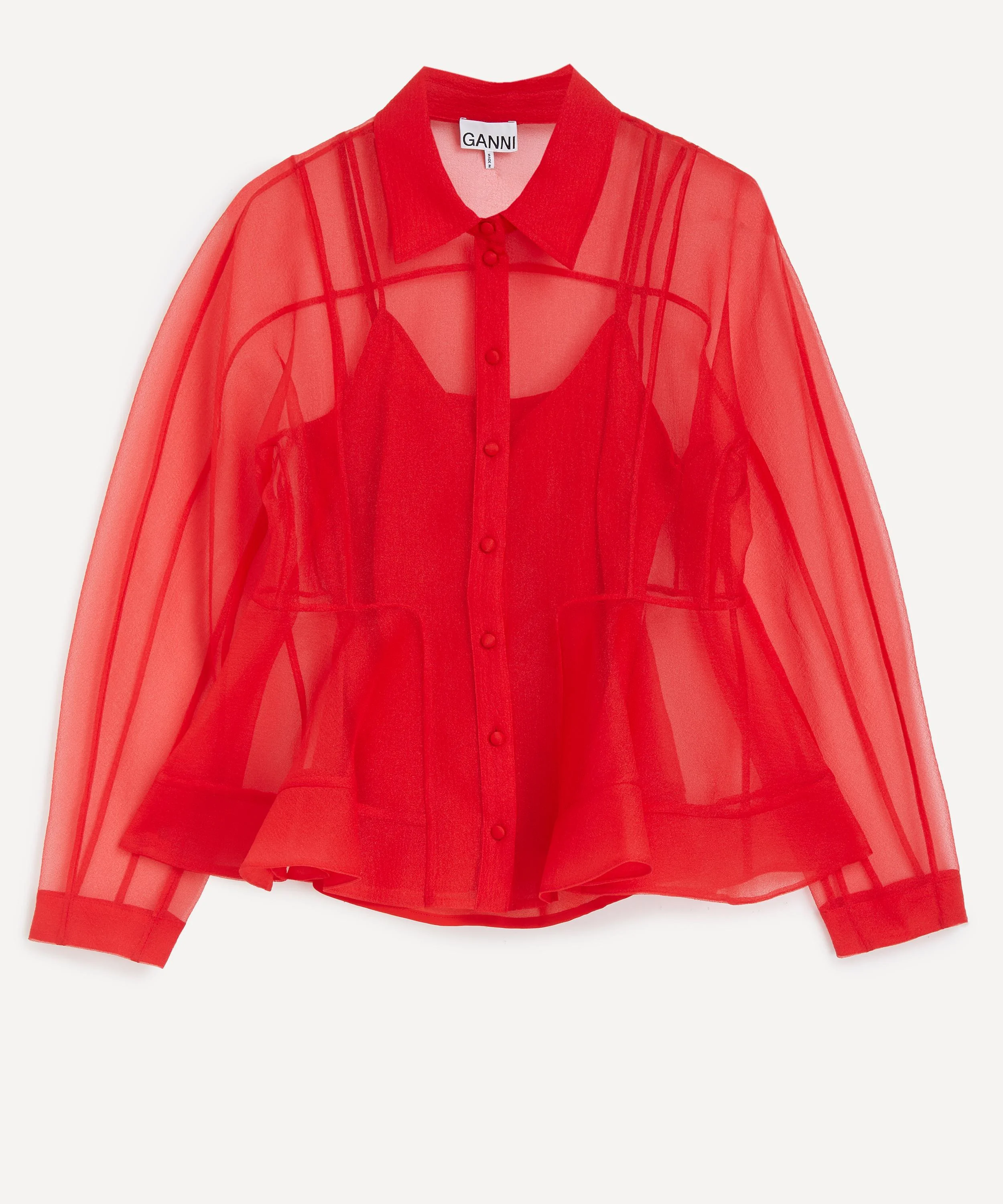 DETAILS Organza shirt Regular fit Curved long sleeves Classic collar Front button fastening Peplum hem Camisole top included SIZE & FIT Model is 178cm/5'10"; Chest: 78cm; Waist: 58cm; Hip: 87cm and wears a size 8 COMPOSITION & CARE 100% Polyester Dry clean