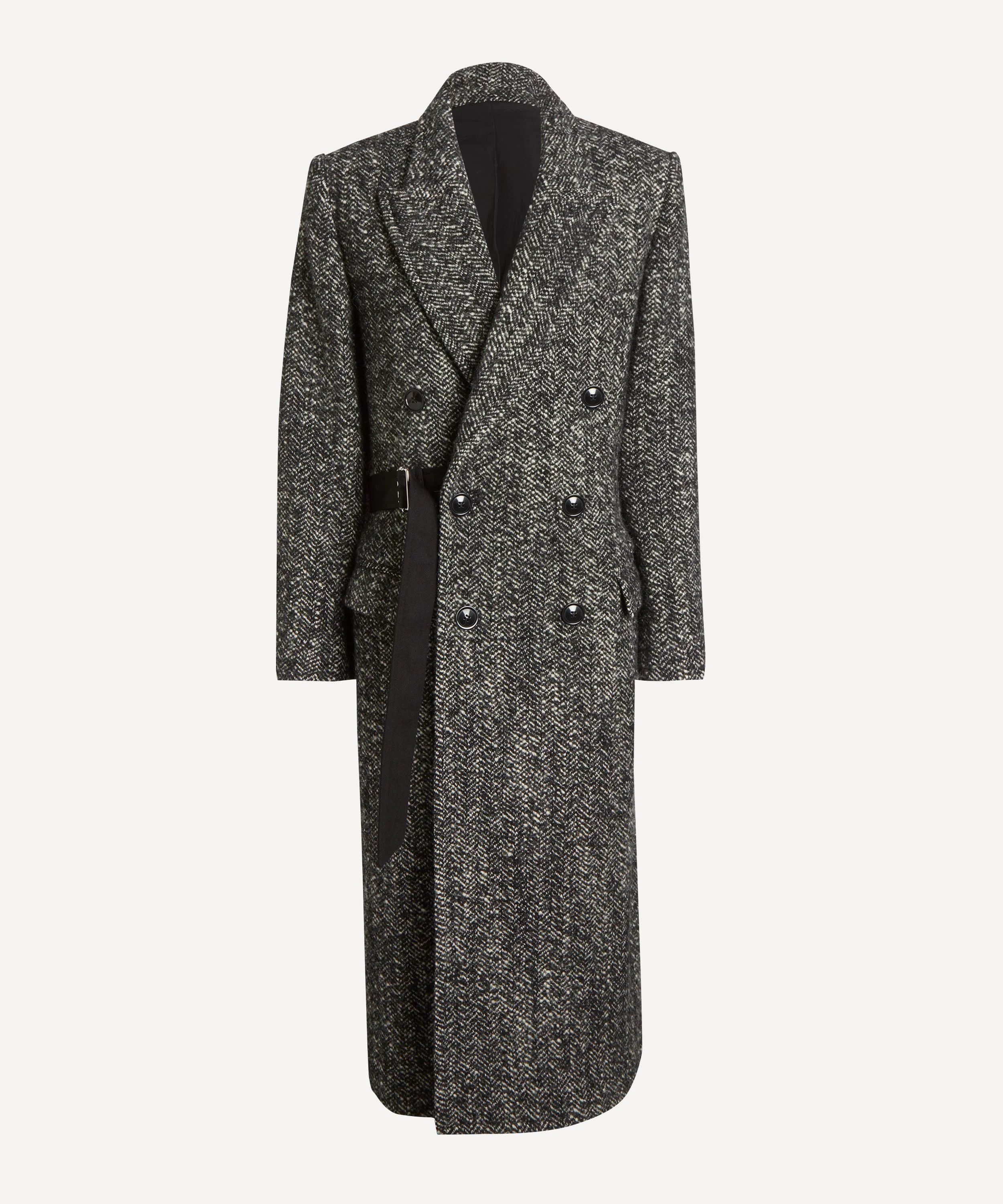 DETAILS Double-breasted coat Chevron-patterned wool-blend tweed Straight fit Structured shoulders Peak lapels Button closure Side belt Front flap pockets Lined SIZE & FIT Model is 178cm/5'10"; Chest: 77cm; Waist: 65cm; Hip: 92cm and wears a size 8 COMPOSITION & CARE 67% Wool; 17% Polyester; 16% Acrylic Dry clean