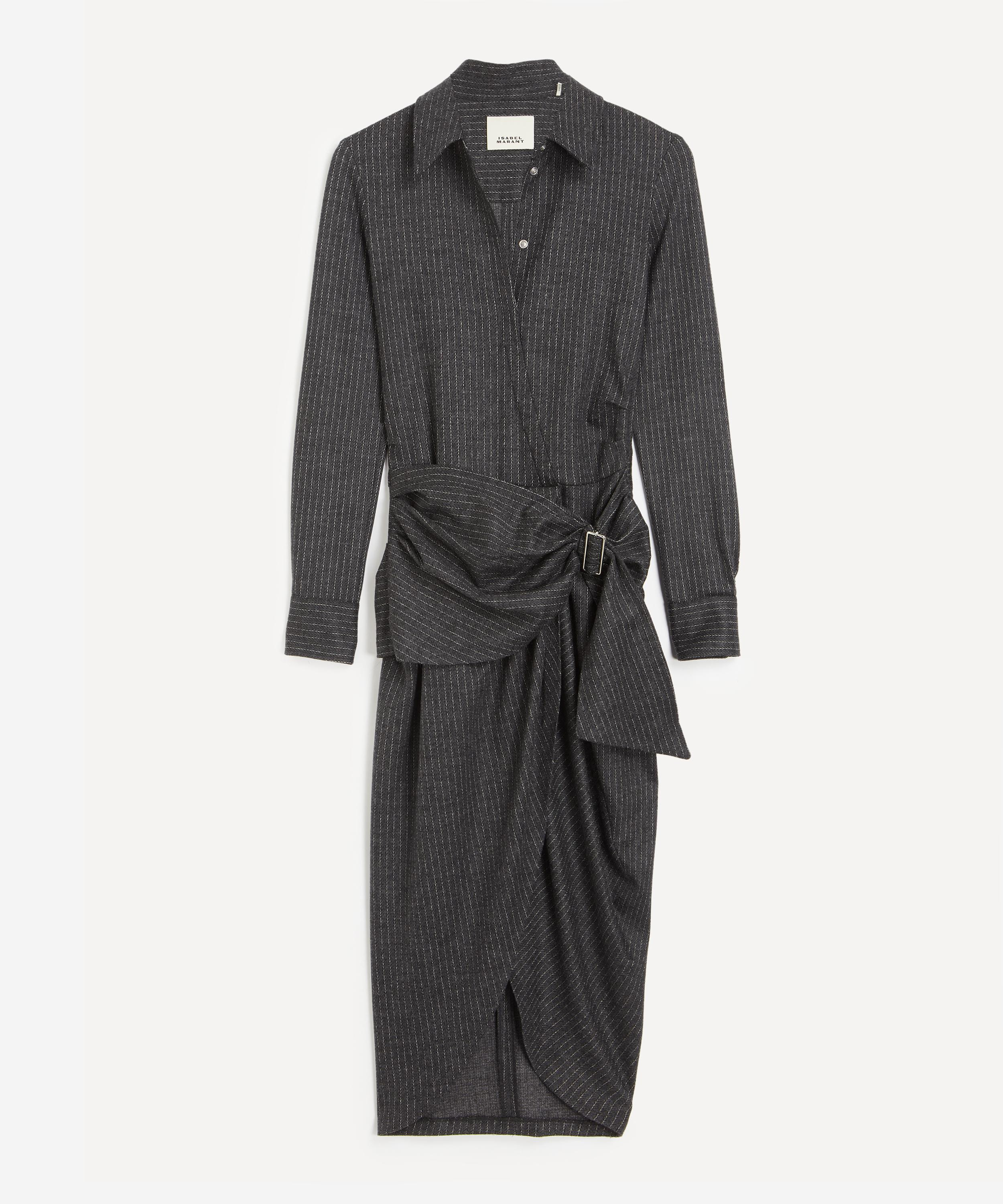 Rosalie draped pinstriped wool and cotton-blend mini dress Dark gray