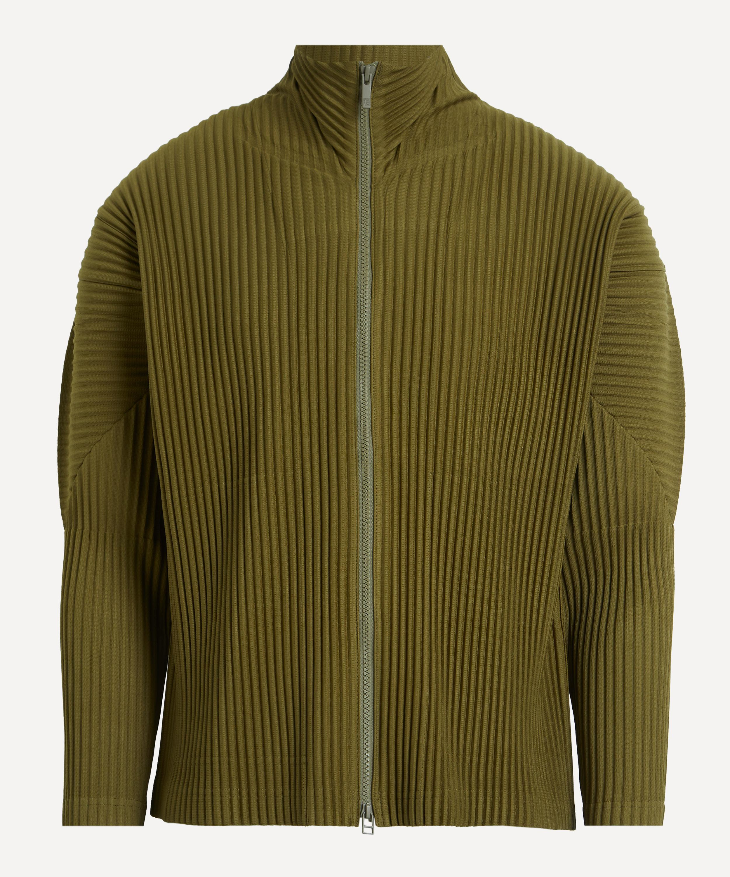 COLOURS PLEATS Olive Khaki Pleated Jacket