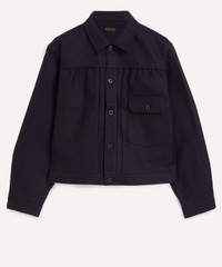 DETAILS Denim jacket Century Denim Boxy fit Slightly cropped length Spread collar Front button fastening Chest flap pocket Contrast white topstitching Adjustable buckled back tab Made in Japan SIZE & FIT Model is 181cm/5'11.5"; Chest: 91cm: Waist: 68.5cm and wears a size 3 COMPOSITION & CARE 100% Cotton Dry clean