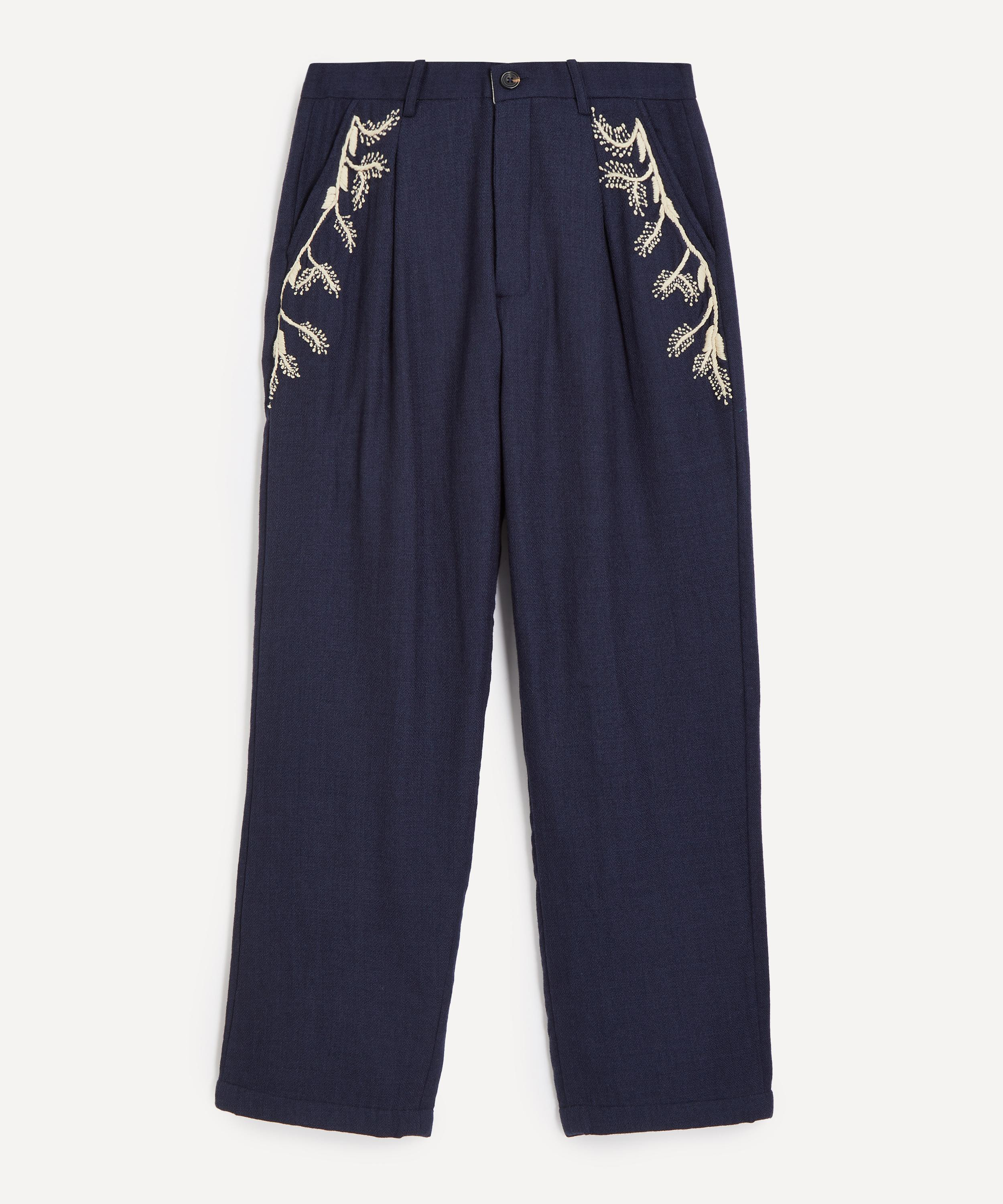 DETAILS Wool trousers Front pleats Hand embroidered Belt loops Button fastening Side pockets SIZE & FIT Model is 188cm/6'2"; Chest: 89cm; Waist: 71cm COMPOSITION & CARE 100% Wool