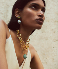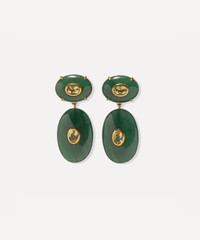 DETAILS Drop earrings 24ct gold-plated brass Green jade stone top and drop base Inlaid with lemon quartz Sterling silver port and butterfly fastening COMPOSITION & SIZE 24ct Gold-Plated Brass; Sterling Silver; Green Jade; Lemon Quartz Drop: 6cm