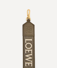 DETAILS Detachable strap Anagram logo design Hook fastenings Gold-tone slider Made in Spain COMPOSITION & SIZE Cotton Jacquard; Calfskin Leather L: 65cm-105 cm, W: 4cm