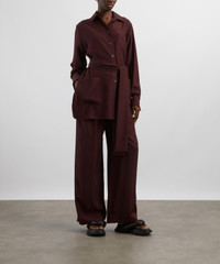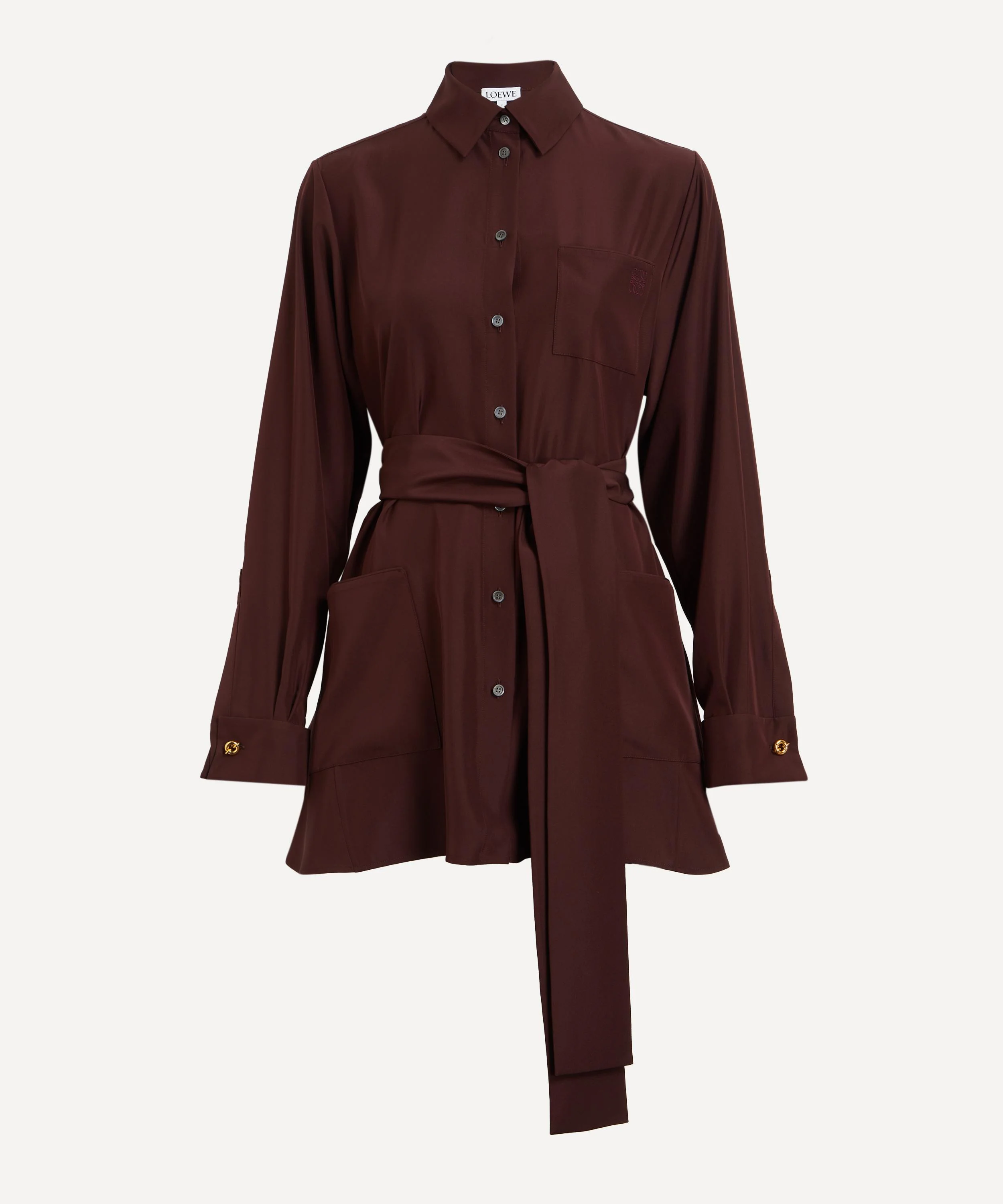 DETAILS Matte silk crepe shirt Relaxed fit Long length Long sleeves Donut chain cuff links Classic collar Front button fastening Self-tie belt with Anagram embroidery Chest patch pockets SIZE & FIT Model is 180cm/5'11"; Chest: 79cm; Waist: 62cm; Hip: 89cm and wears a size 8 COMPOSITION & CARE 100% Silk Dry clean