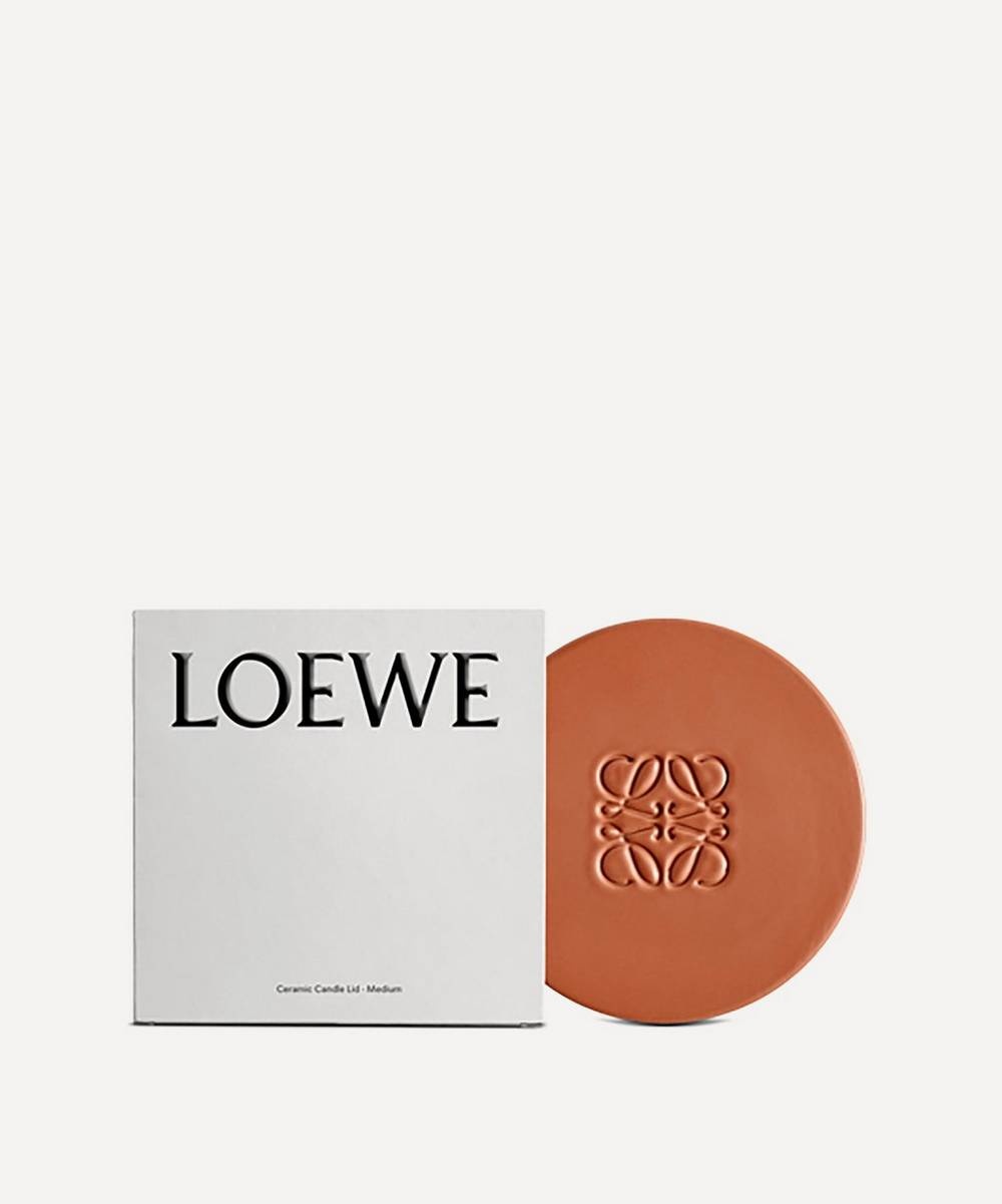 Editor's Notes This terracotta ceramic candle lid is designed to protect your Loewe scented candle from dust and loss of fragrance, while also acting as a base when the candle is lit. Loewe is dedicated to the reinvention of craft – the thread that runs through every tier of the label, woven just as instinctively into its home and beauty collections as in the leather goods on which the brand’s renown is built. Embossed with the signature Loewe Anagram, the circular candle lid is a stylish way to present your candle, and features an anti-slip surface to act as a base when your candle is illuminated. Features Medium candle lid Crafted in terracotta One side is glazed Anti-slip Reverse is textured for a stabilising, anti-slip surface Anagram logo About Loewe Luxury Spanish fashion house Loewe was founded in 1846 by a group of leather craftsmen and over a century later they opened a shop on London’s Bond Street. The ready-to-wear and leather goods collections that followed launched the careers of many prestigious designers. Current creative director Jonathan Anderson brings his idiosyncratic perspective to Loewe - think logo-emblazoned, refined accessories and unpredictable clothing that’s always one step ahead of the zeitgeist.