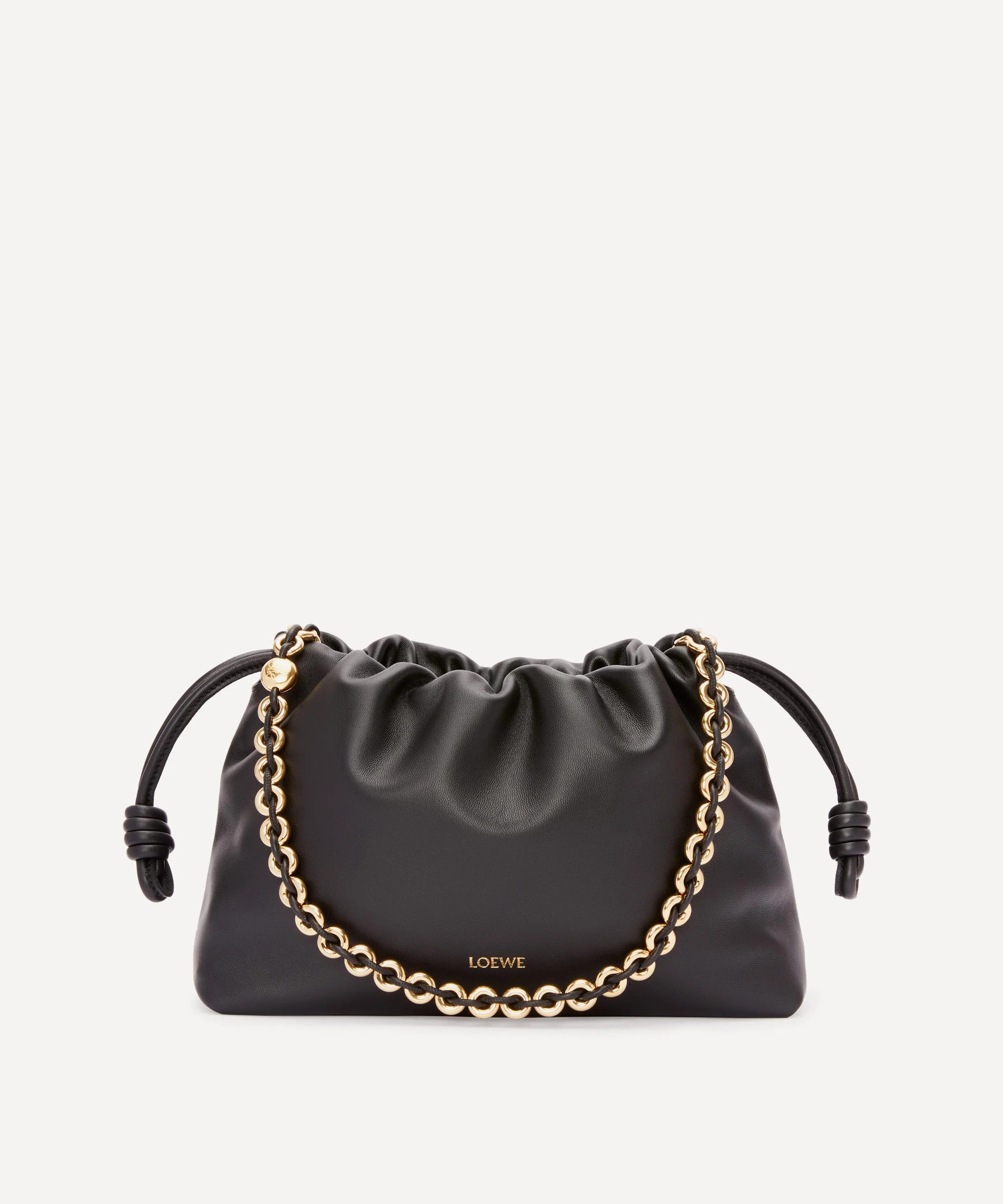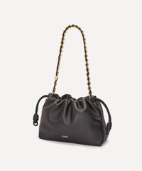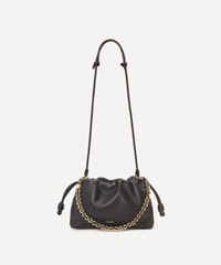 DETAILS Clutch bag Mellow nappa lambskin leather Ruched design Suede lining Concealed magnetic snap closure Coiled knot details Embossed logo Adjustable and detachable leather strap Adjustable and detachable donut chain Made in Spain COMPOSITION & SIZE 80% Lambskin; 20% Calfskin Leather H: 20cm, L: 30cm, D: 10.5cm Strap L: 96cm-120cm