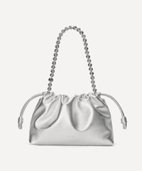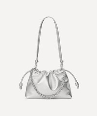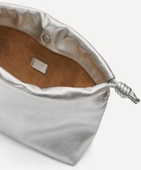 DETAILS Clutch bag Nappa leather Laminated finish Magnetic closure Knotted drawstring ties Adjustable, detachable leather strap Detachable donut chain strap Anagram pebble detail Embossed logo Made in Spain COMPOSITION & CARE Nappa Lambskin Leather H: 20cm, W: 30cm, D: 10.5cm Handle drop: 37cm-67cm Strap L: 82cm-142cm