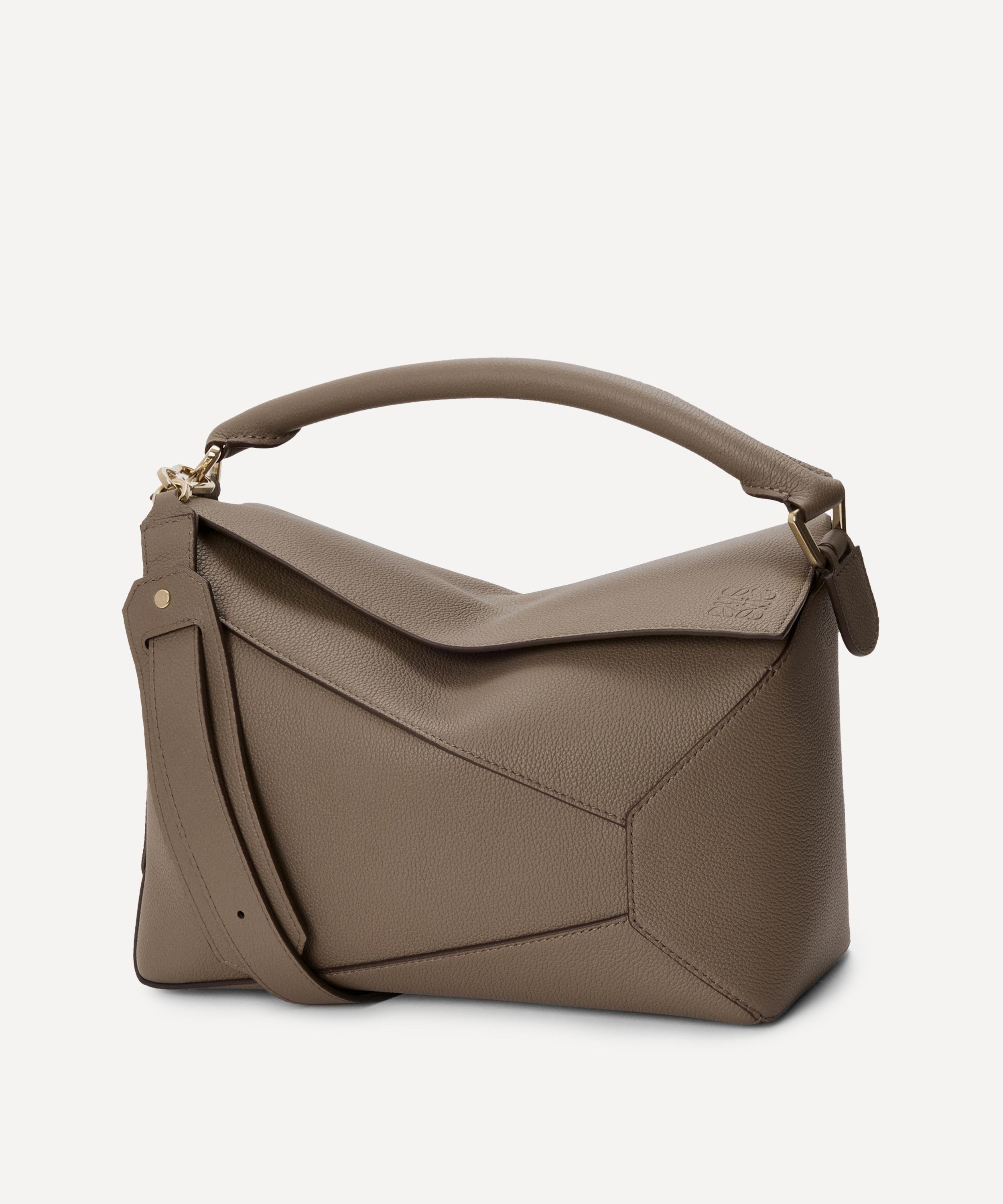 DETAILS Top handle bag Grained calfskin leather Herringbone cotton canvas lining Cuboid silhouette Geometric lines Top leather handle Detachable and adjustable strap Zip closure Two internal slip pocket Zip pocket at back Embossed Anagram COMPOSITION & SIZE Outer: 100% Calfskin Leather Lining: 55% Cotton; 45% Linen H: 19cm, W: 29cm, D: 14cm Strap L: 80.5cm-115.5cm