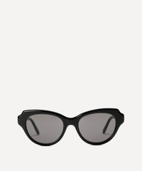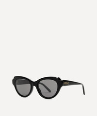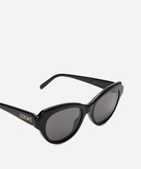 DETAILS Cat-eye sunglasses Black acetate frames Tinted lenses Saddle nose bridge Full rim Gold-tone Loewe logo to temple 100% UVA/UVB protection COMPOSITION & SIZE Acetate Arm: 14cm, Bridge: 1.9cm, Lens: 5.3cm