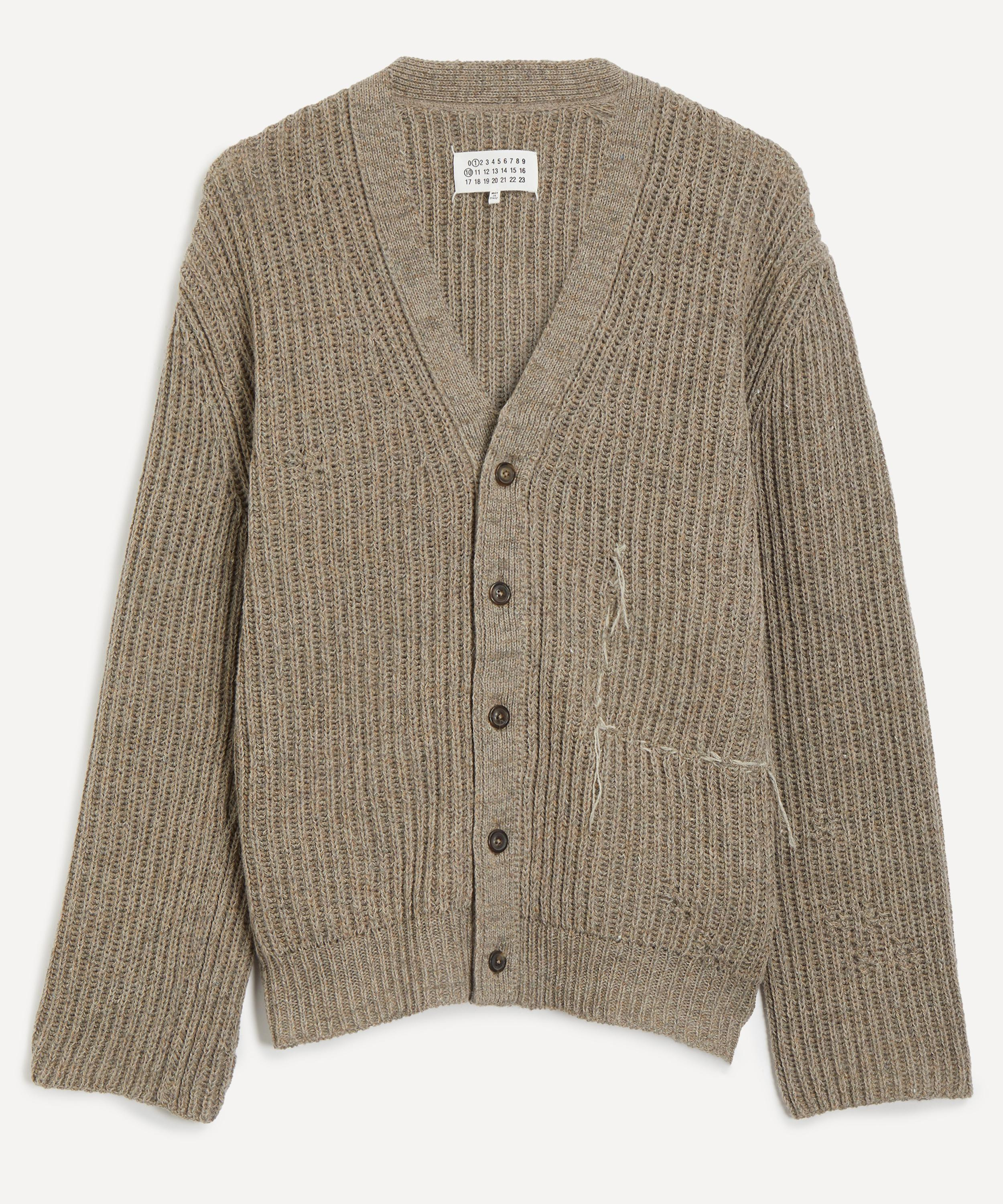 DETAILS Wool-blend cardigan Loose fit Dropped shoulders Long sleeves V-neckline Button closure Tonal buttons Ribbed trims Distressed detailing Signature four stitches at the back SIZE & FIT Model is 175cm/5'9"; Chest: 77cm; Waist: 57cm; Hip: 87cm and wears a size S COMPOSITION & CARE 51% Virgin Wool; 47% Cotton; 2% Other Fibres Dry clean