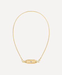 DETAILS Locket necklace 18ct gold Barrel Baby locket pendant Three blue sapphire gemstones Three enamelled Evil Eyes Gourmette chain Handcuff clasp fastening at each end COMPOSITION & SIZE 18ct Gold; 0.06ct Sapphire Chain L: 42cm