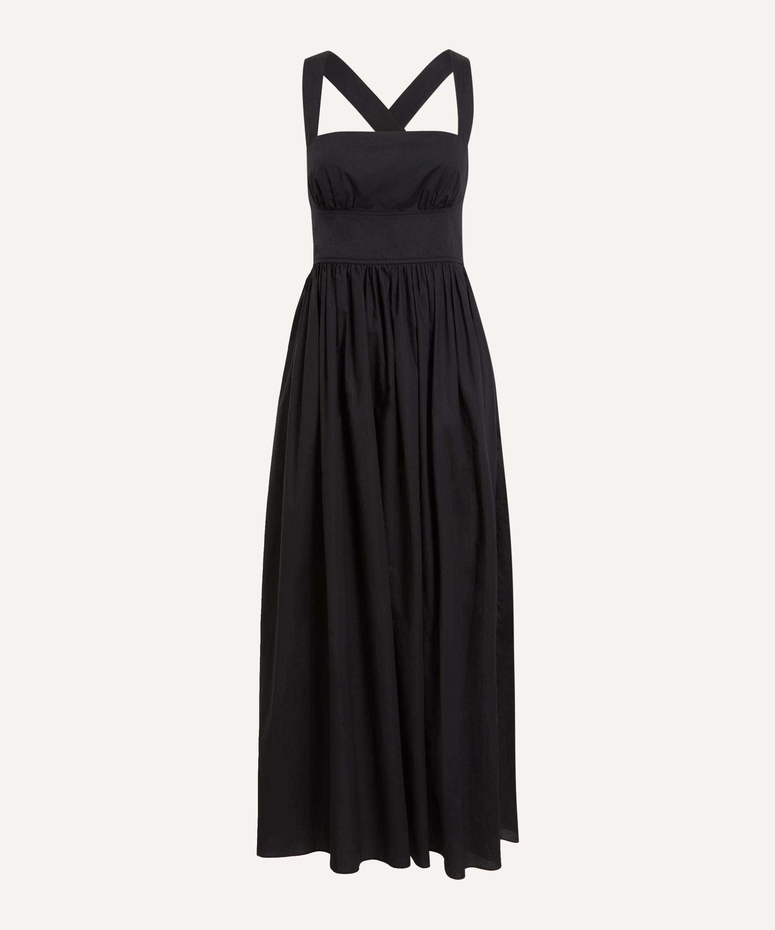 DETAILS Cotton midi dress A-line silhouette Squared neckline Fitted bodice Inseam pockets Crossed back SIZE & FIT Model is 179cm/5'10.5"; Chest: 81cm; Waist: 64cm; Hip: 89cm and wears a size 2 COMPOSITION & CARE 100% Cotton Dry clean