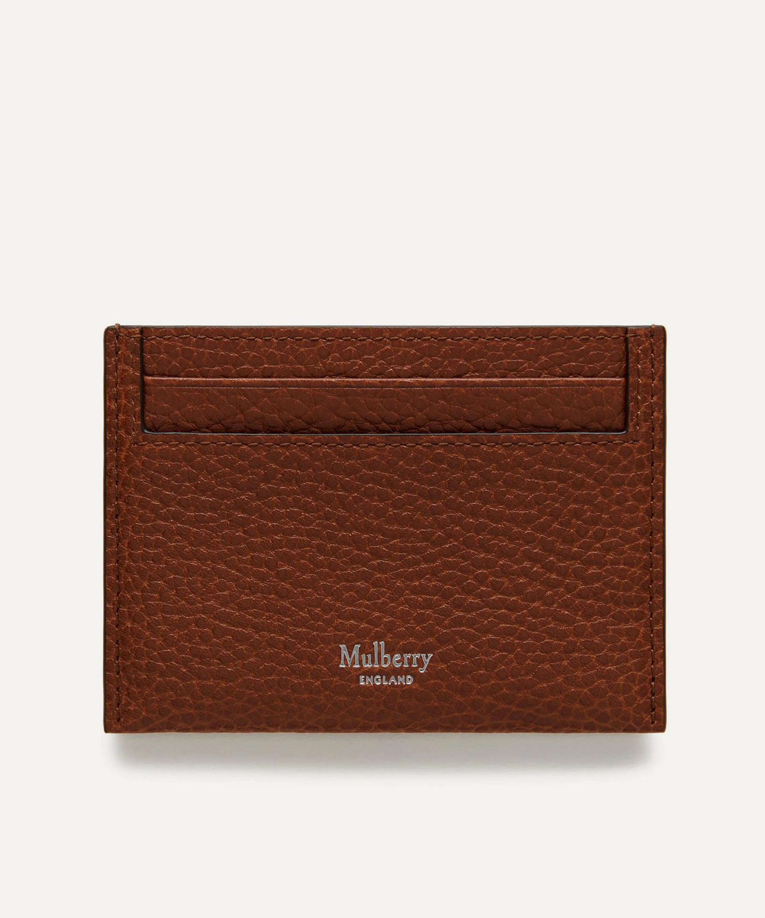 DETAILS Credit card holder Grained leather Brown colourway Four credit card slip pockets One middle slip pocket Foil embossed Mulberry signature and tree logo Nappa lining COMPOSITION & SIZE Outer: Classic Grain Leather Lining: Nappa H: 7.5cm, W: 10cm