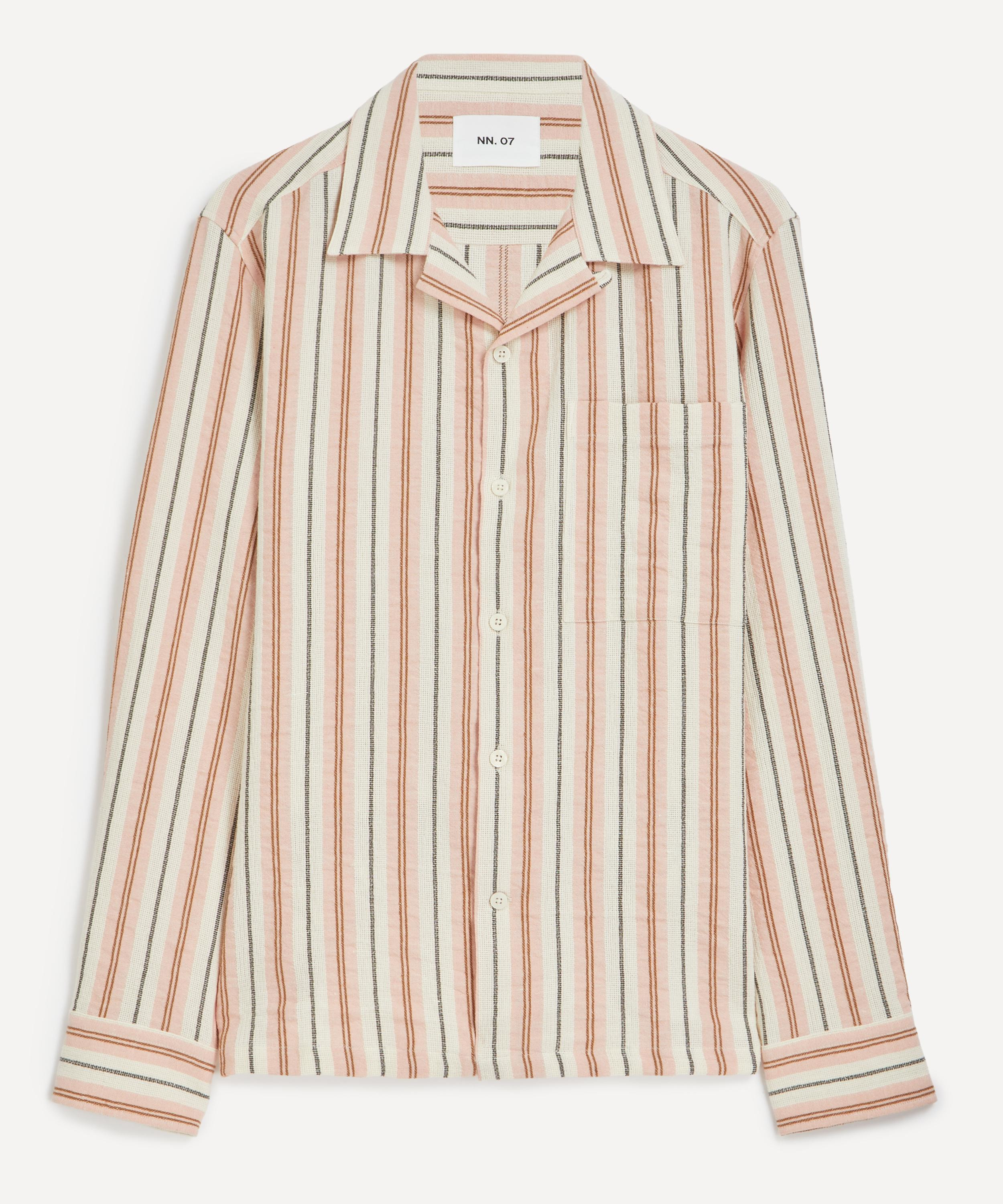 DETAILS Striped cotton-linen shirt Relaxed fit Long sleeves Buttoned cuffs Open collar Front button fastening Chest patch pocket SIZE & FIT Model is 186cm/6'1"; Chest: 91.5cm; Waist: 74cm and wears M COMPOSITION & CARE 77% Cotton; 17% Linen; 6% Polyester Machine washable