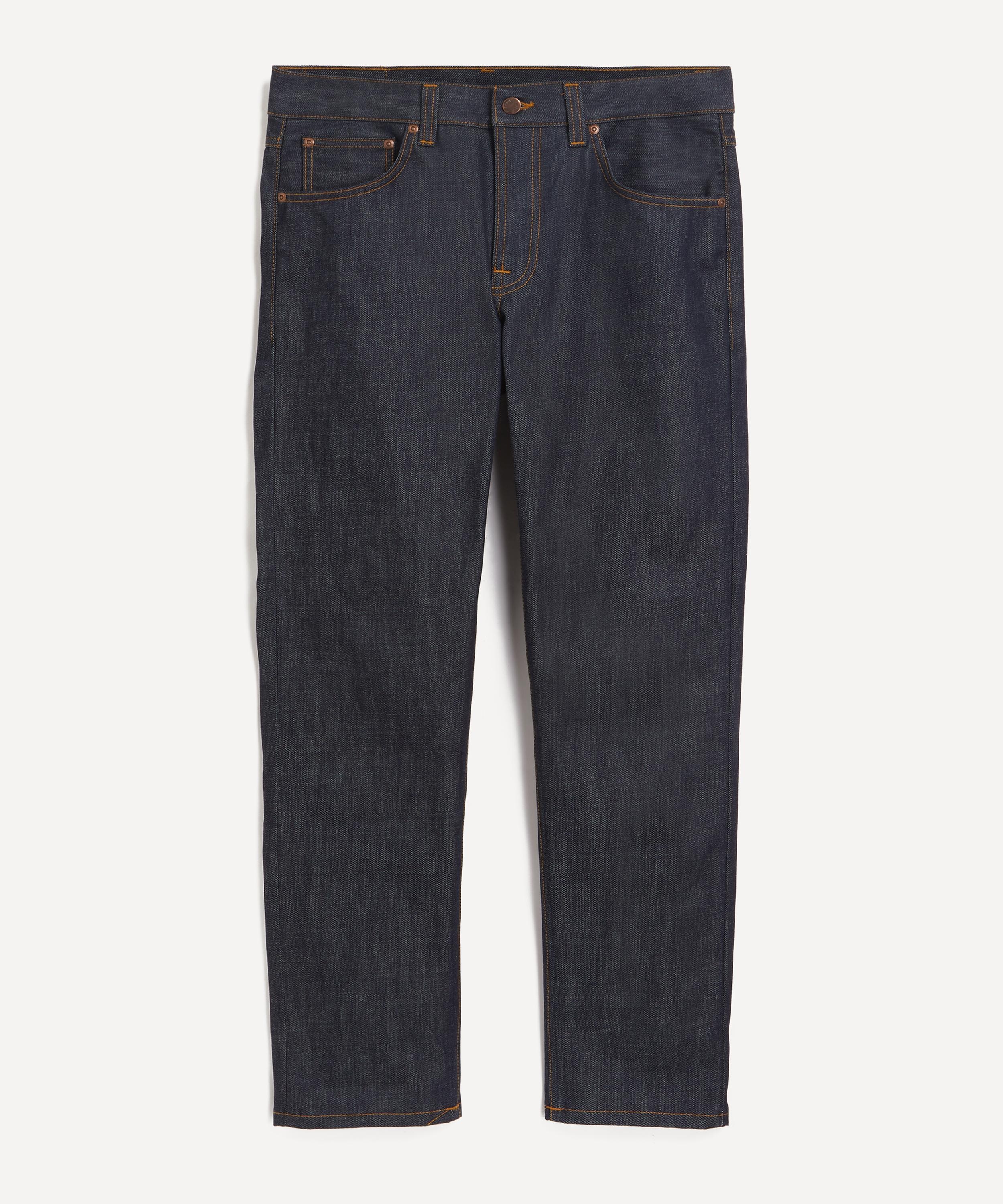 DETAILS Gritty Jackson jeans 14.9oz rigid denim Regular straight-leg fit Mid waist rise Designer wash: Dry Old Tobacco thread at seams Copper trims Zip fly and button fastening Leather patch to rear Made in Italy SIZE & FIT Model is 186cm/6’1"; Chest: 92cm; Waist: 71cm and wears a size 32 COMPOSITION & CARE 100% Cotton Machine wash at 30°C