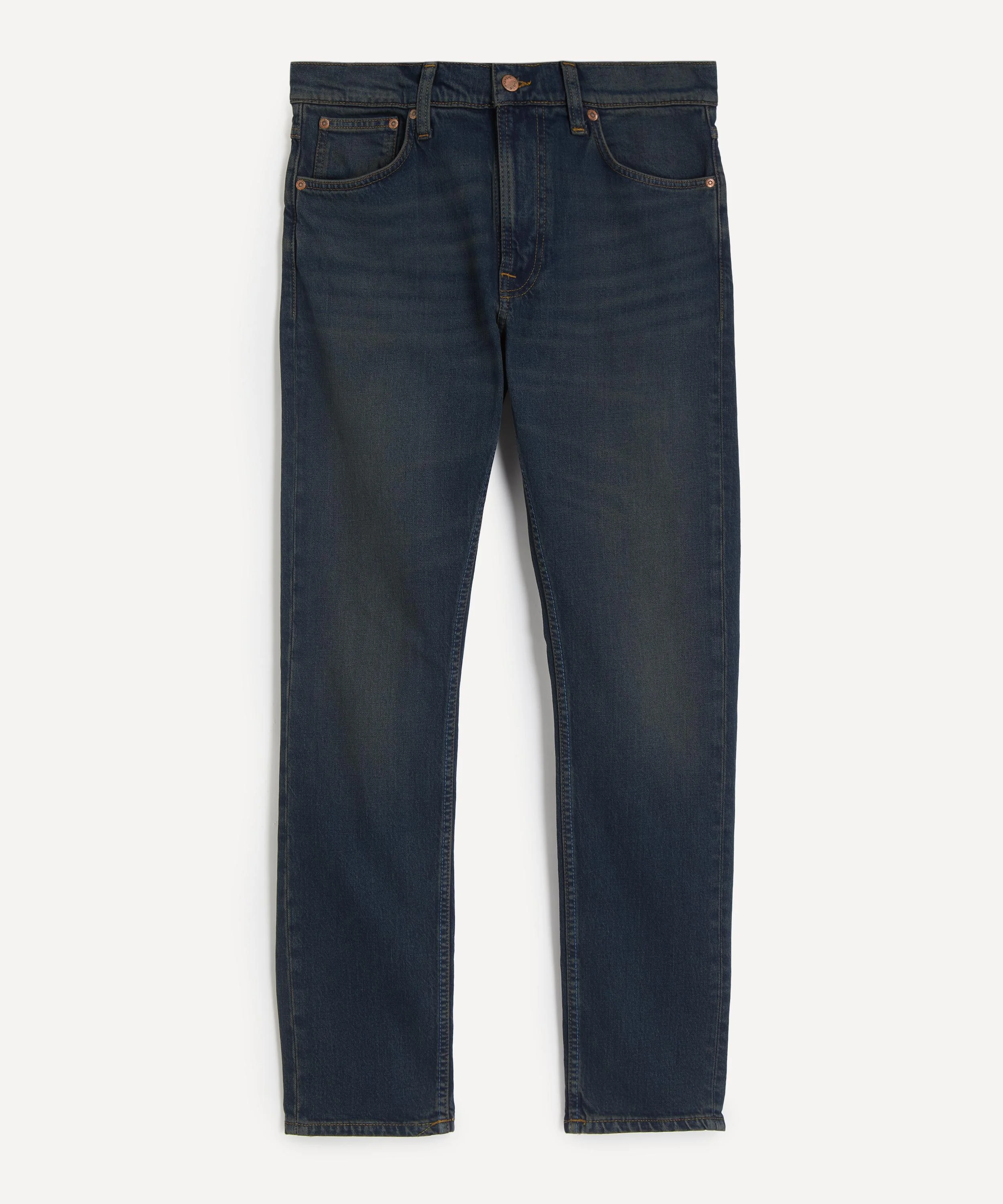 DETAILS Lean Dean jeans 13 oz. stretch denim Slim fit Mid-waist Tapered-leg Slim leg opening Button fly 5-pocket construction Copper trims Faded orange thread at seams Jacron patch Designer wash: Blackened Blue SIZE & FIT Model is 188cm/6'2"; Chest: 89cm; Waist: 71cm and wears a size 32/32 COMPOSITION & CARE 100% Cotton Machine washable