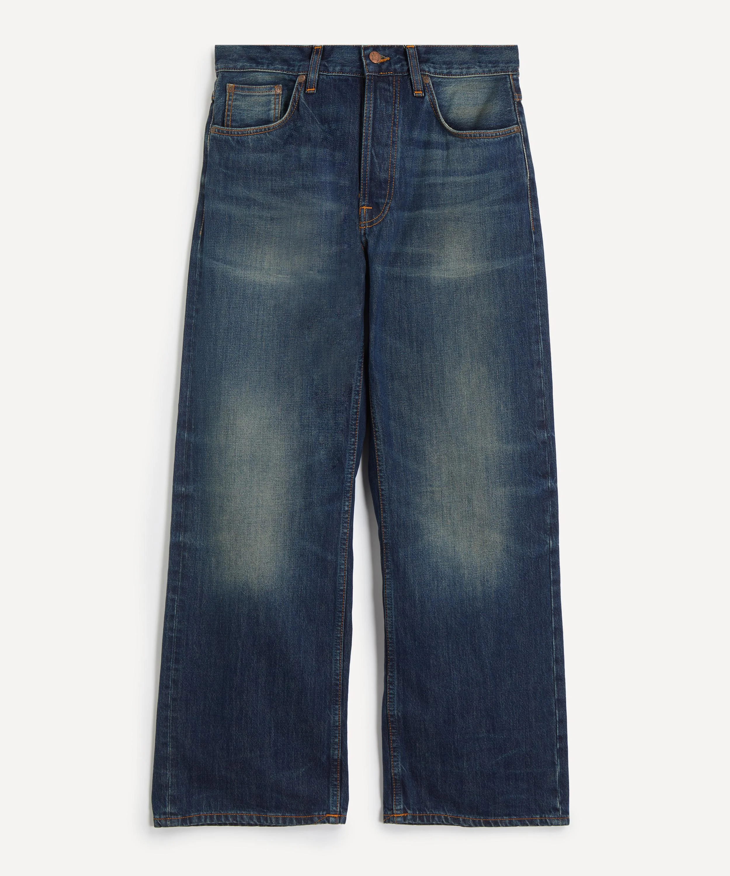 DETAILS Loud Larry jeans 14.2 oz. stretch denim Loose fit High-waist Wide-leg Wide-leg opening Button fly 5-pocket construction Copper trims Orange thread at seams Jacron patch Designer wash: Dirt Wash Fades and wear marks SIZE & FIT Model is 187cm/6'1.5"; Chest: 82.5cm; Waist: 74cm and wears a size 32/32 COMPOSITION & CARE 100% Cotton Machine wash 40°C. Do not tumble dry. Iron at low temperature