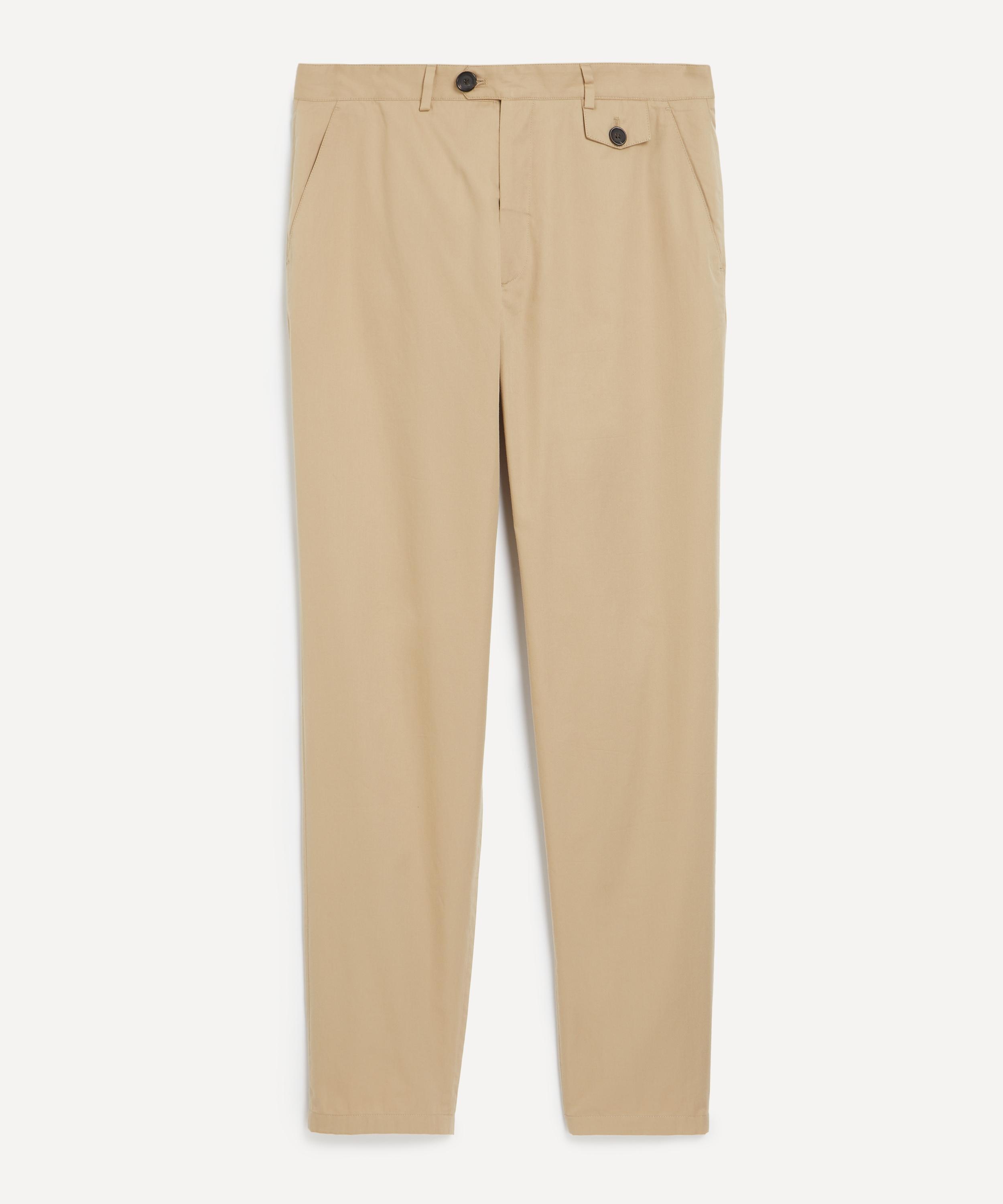 DETAILS Cotton trousers Regular fit Gradual taper from mid thigh Fishtail-style waistband Belt loops Zip fly and button fastening Coin pocket Side slash pockets Rear welt and patch pockets SIZE & FIT Model is 188cm/6'2"; Chest: 92cm; Waist: 80cm and wears a size 32 COMPOSITION & CARE 100% Cotton Dry clean