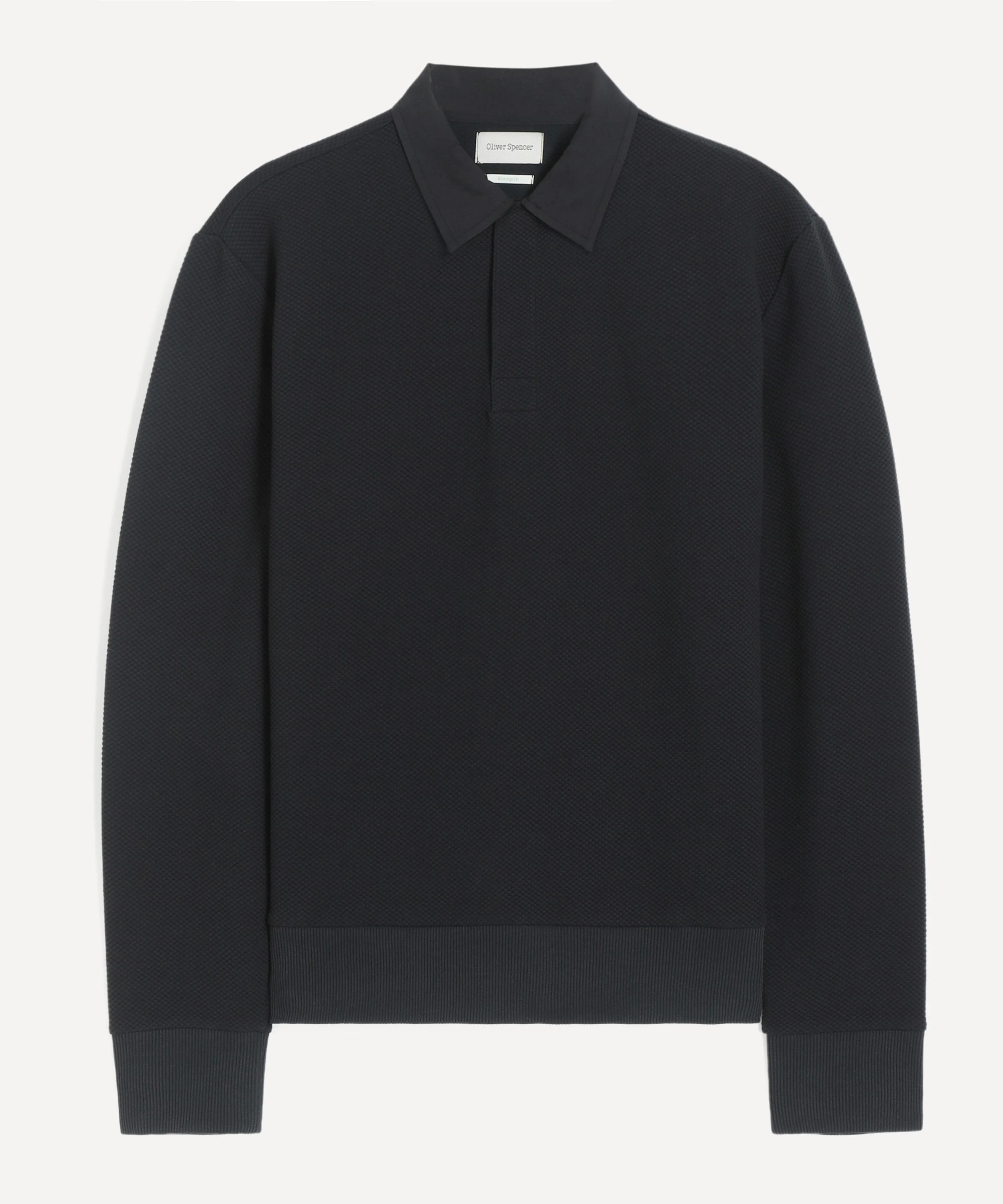 DETAILS Rugby shirt Cotton-blend Spread collar Concealed button placket Relaxed fit Ribbed hems SIZE & FIT Model is 188cm/6'2"; Chest: 89cm; Waist: 71cm and wears a size M COMPOSITION & CARE 55% Cotton; 42% Polyester; 3% Elastane Machine wash