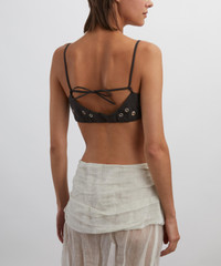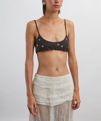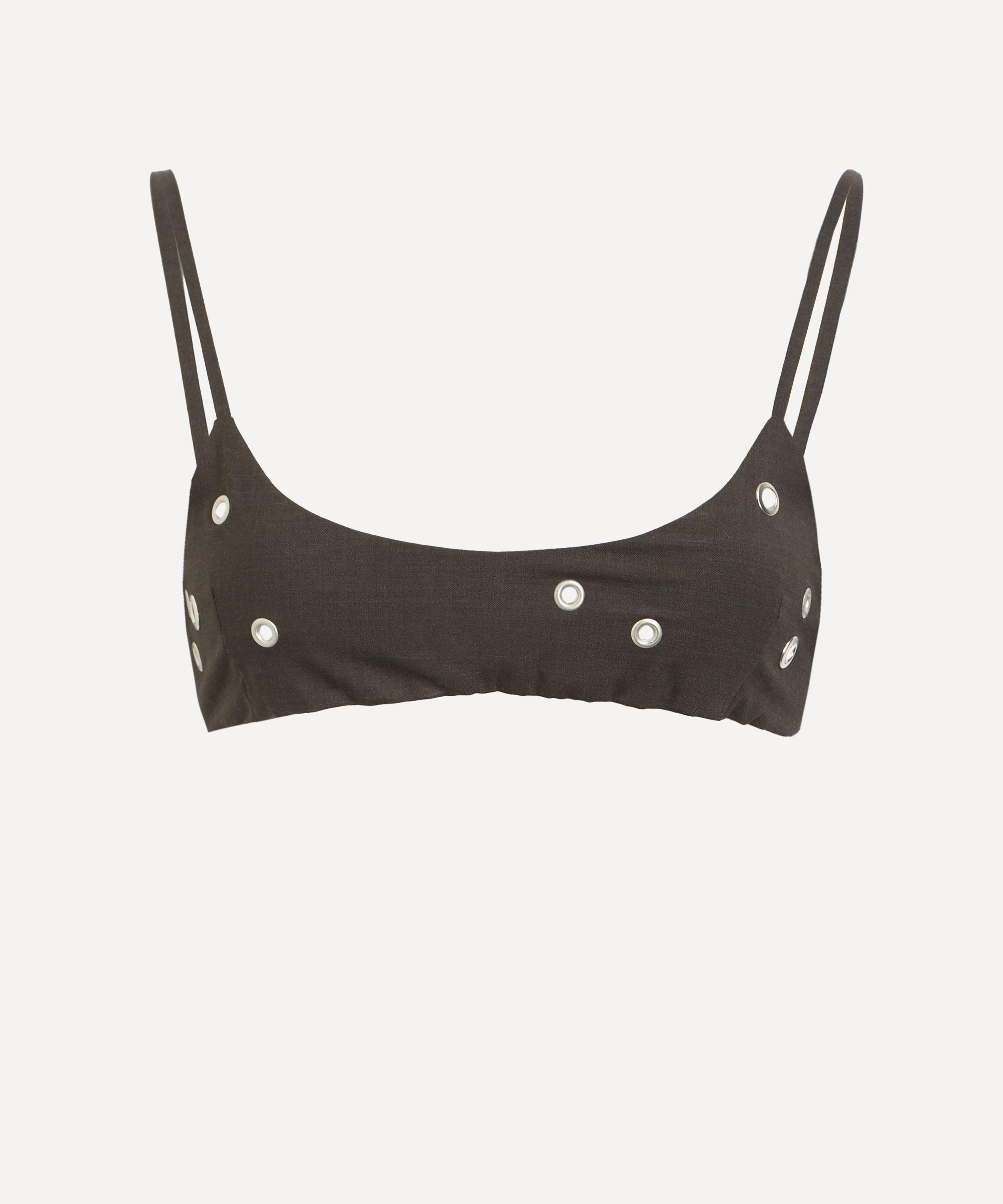 DETAILS Bra top Tailoring fabric Adjustable straps Eyelet studs Side closure with mother-of-pearl buttons SIZE & FIT 176cm/5'9"; Chest: 76.5cm; Waist: 61.5cm; Hip: 99cm and wears a size S COMPOSITION & CARE 51% Polyester; 43% Wool; 6% Elastane Gentle wash max. 30ºC