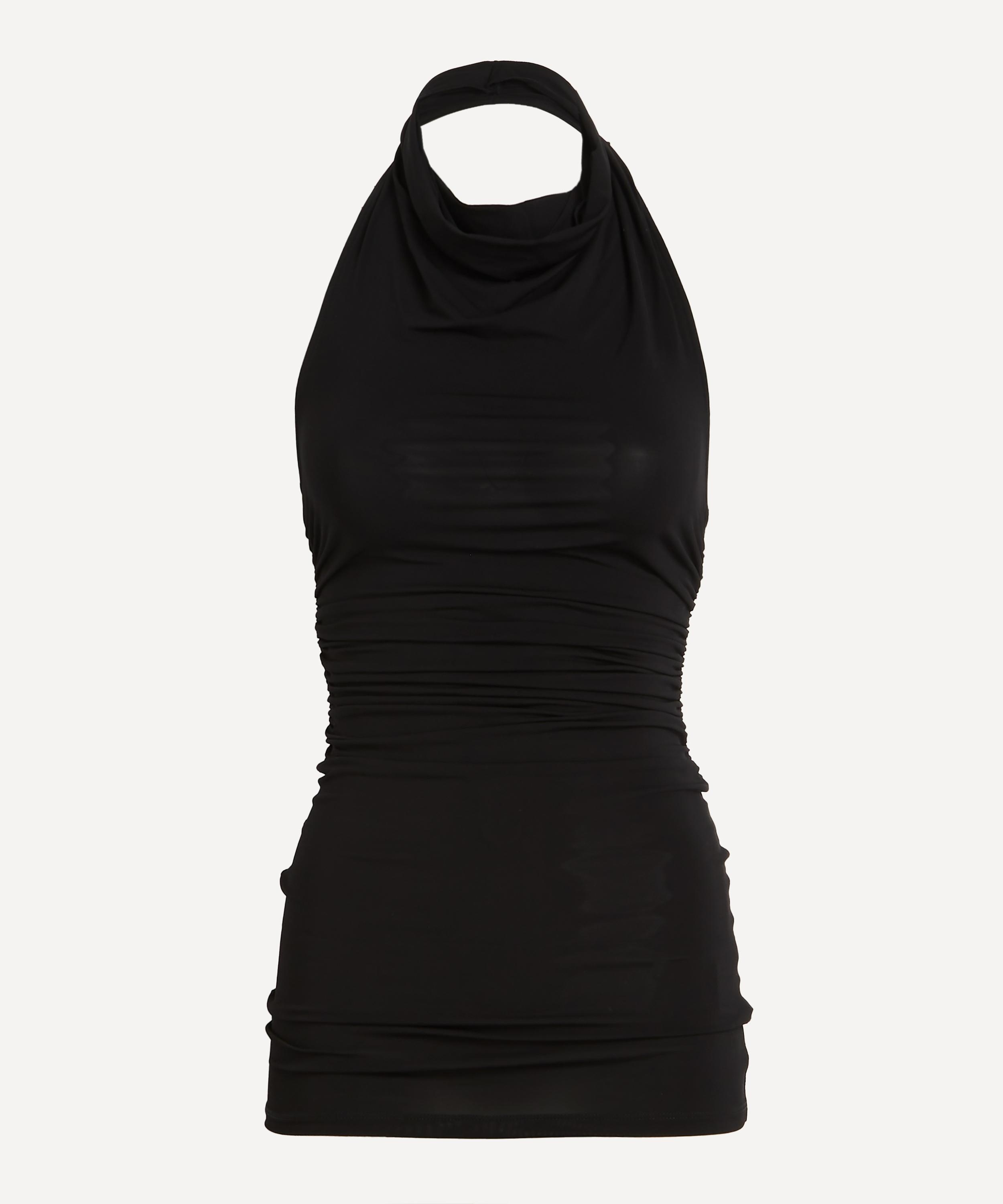 DETAILS Cupro top Fitted silhouette Sleeveless Halter neckline Open back Gathered sides SIZE & FIT 176cm/5'9"; Chest: 76.5cm; Waist: 61.5cm; Hip: 99cm and wears a size S COMPOSITION & CARE 98% Cupro; 2% Elastane Hand wash