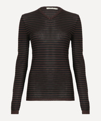 DETAILS Merino wool jumper Slightly sheer, striped construction Fitted Long sleeves V-neckline Ribbed trims Made in Spain SIZE & FIT Model is 180cm/5'11"; Chest: 86cm; Waist: 62cm; Hip: 90cm and wears a size S COMPOSITION & CARE 88% Merino wool; 12% Polyamide Hand wash
