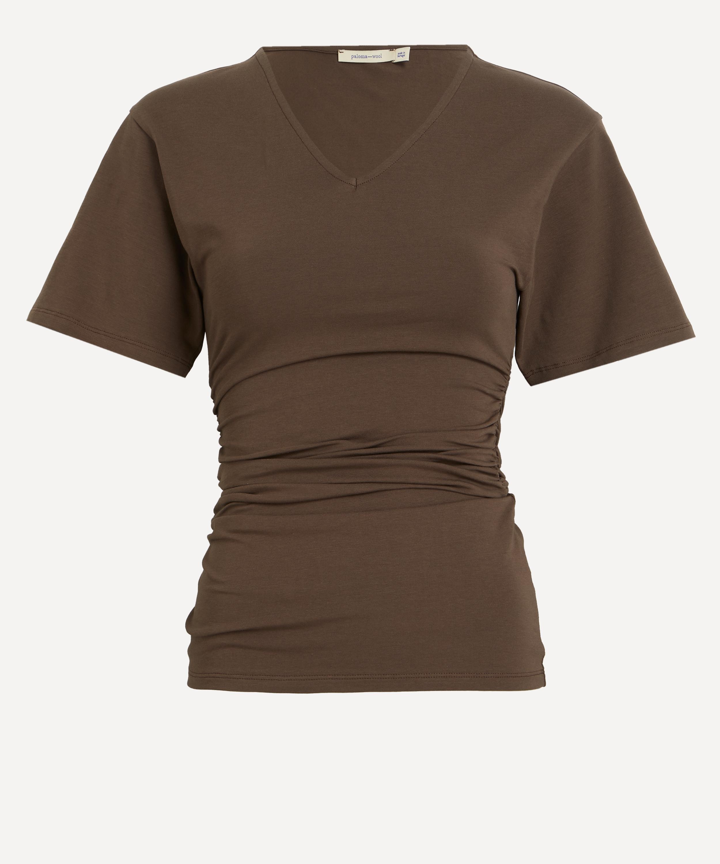 DETAILS Cotton-stretch top Form-fitting silhouette Short sleeves V-neckline Gathered sides SIZE & FIT 176cm/5'9"; Chest: 76.5cm; Waist: 61.5cm; Hip: 99cm and wears a size S COMPOSITION & CARE 94% Cotton; 6% Elastane Gentle wash max. 30ºC