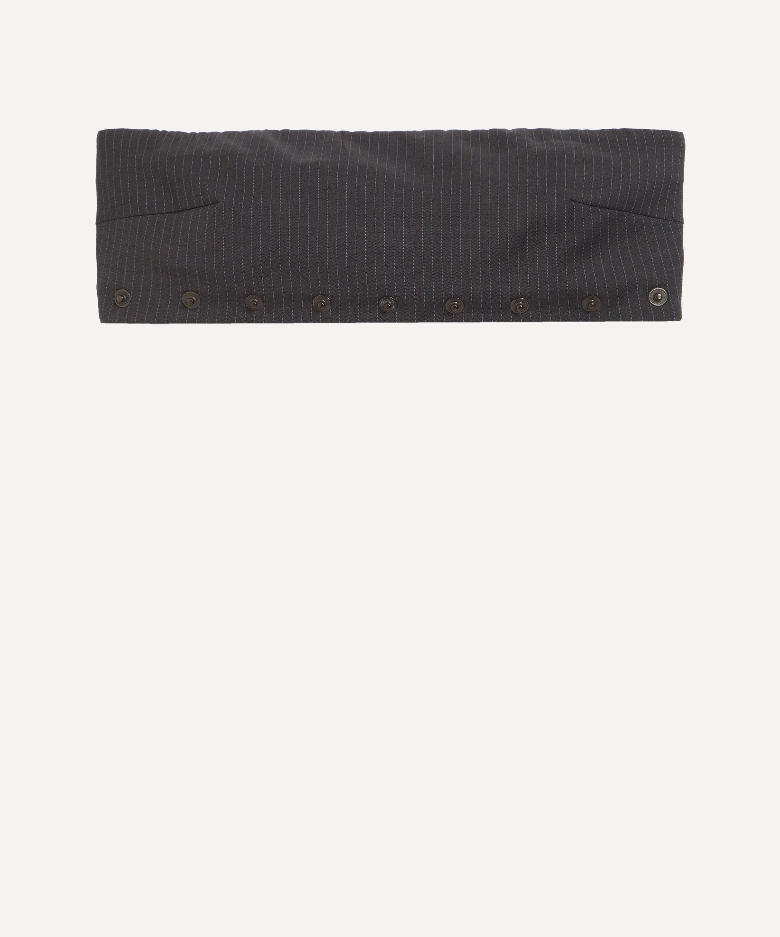 DETAILS Bandeau crop top Pinstripe suit fabric Snaps at bottom Side zipper SIZE & FIT 176cm/5'9"; Chest: 76.5cm; Waist: 61.5cm; Hip: 99cm and wears a size S COMPOSITION & CARE 54% Polyester; 44% Wool; 2% Elastane Gentle wash max. 30ºC