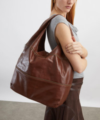 DETAILS Shoulder bag Subtle shine leather Slouchy silhouette Magnetic closure Single shoulder strap Zip detailing Extendable through the centre Interior pocket Made in Spain COMPOSITION & SIZE 100% Leather L: 52cm, W: 45cm Handle drop: 63cm