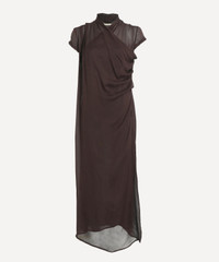 DETAILS Double-layered silk dress Loose fit Long length Crossed neckline Short cap sleeves with raw edges Draped sides Made in Spain SIZE & FIT Model is 180cm/5'11"; Chest: 86cm; Waist: 62cm; Hip: 90cm and wears a size S COMPOSITION & CARE 100% Silk Hand wash