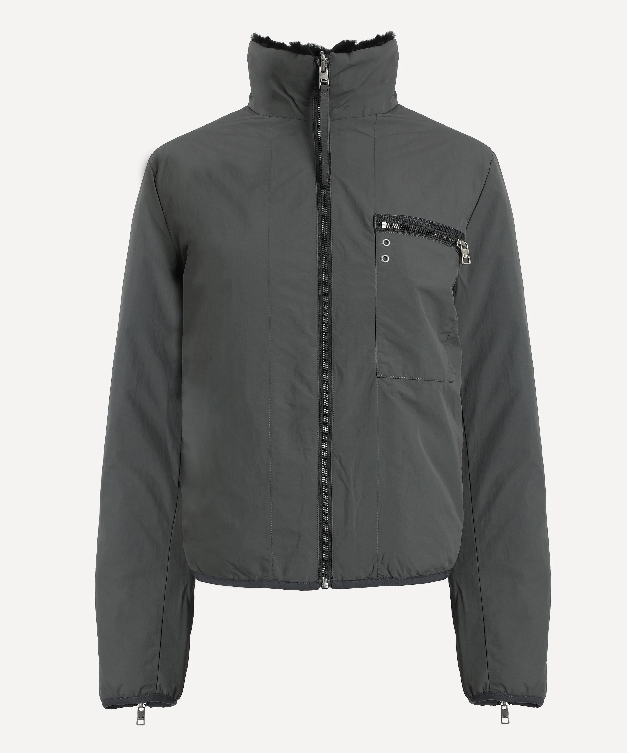 DETAILS Reversible puffer jacket Regular fit Down-filled Contrast furry collar, placket, and cuffs Zip fastening Zipped chest pocket Reverse patch pockets Adjustable hem SIZE & FIT Model is 180cm/5'11"; Chest: 86cm; Waist: 62cm; Hip: 90cm and wears a size S COMPOSITION & CARE Shell: 100% Polyamide Lining: 100% Polyamide Fur: 100% Polyester Filling: 90% Down; 10% Other Gentle wash 30ºC